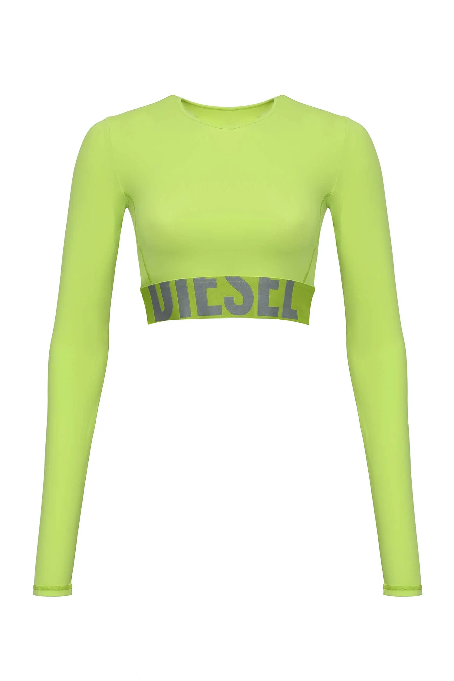 ТОП ЛАЙМОВЫЙ, НА РЕЗИНКЕ КРУПНАЯ СЕРАЯ ЛОГО-НАДПИСЬ, ДЛ/РУК.