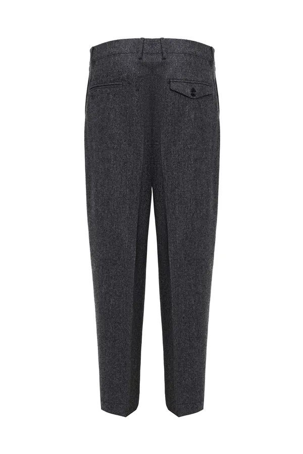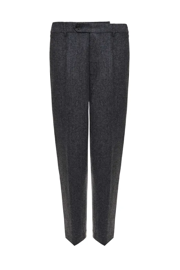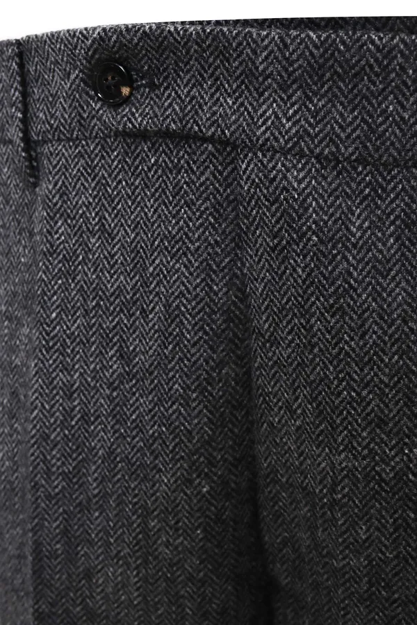 БРЮКИ CHIAIA FF LONG СЕРЫЕ ШЕРСТЬ, ШЕВРОННЫЙ УЗОР, СЗАДИ КАРМАНЫ