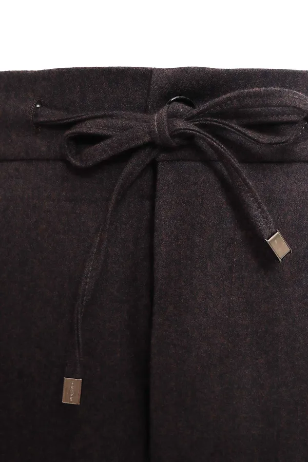 БРЮКИ SPIAGGIA 1P Т/КОРИЧНЕВЫЕ ШЕРСТЬ, НА КУЛИСКЕ, ПОЯС НА РЕЗИНКЕ, СЗАДИ КАРМАН