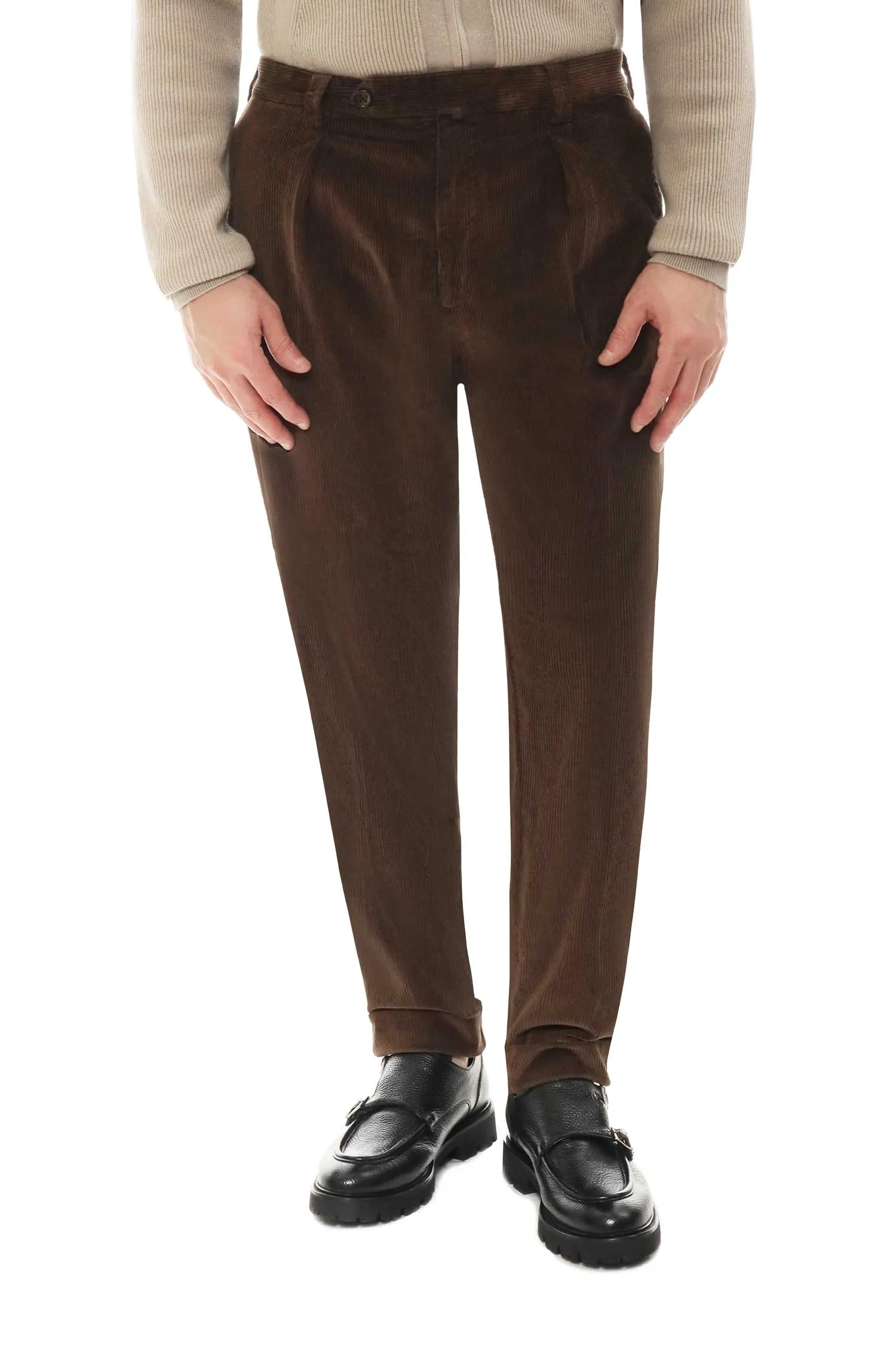 BERWICH БРЮКИ CHIAIA LONG GD КОРИЧНЕВЫЕ, ВЕЛЬВЕТОВЫЕ, С ОТВОРОТАМИ, СЗАДИ КАРМАНЫ