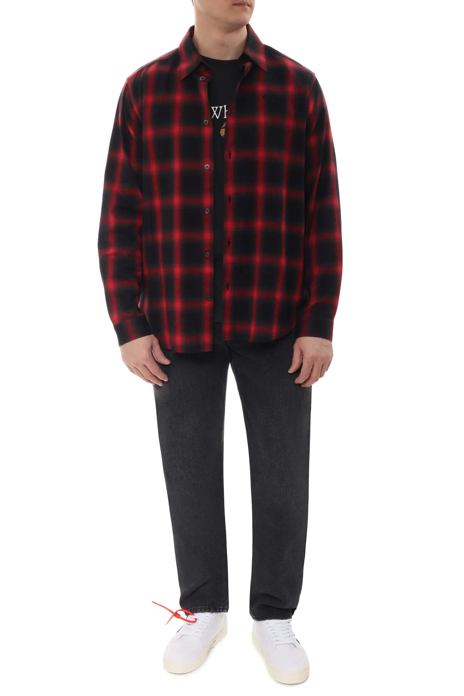 РУБАШКА ЧЁРНО-КРАСНАЯ В КЛЕТКУ, ФЛАНЕЛЬ, НА ГРУДИ ВЫШИТОЕ ЧЁРНОЕ ЛОГО