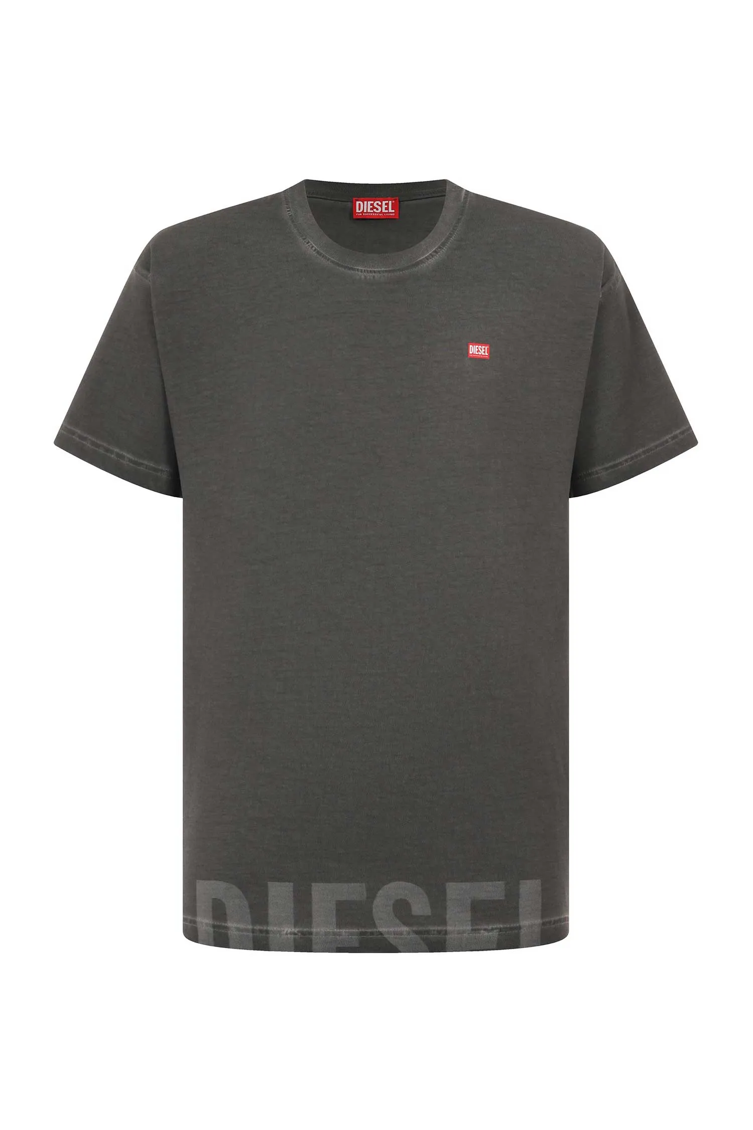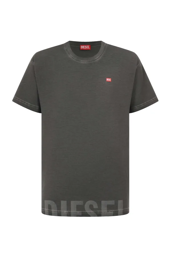 DIESEL ФУТБОЛКА Т/СЕРАЯ, ВЫВАРЕННАЯ, СНИЗУ КРУПНАЯ ЛОГО-НАДПИСЬ В ТОН