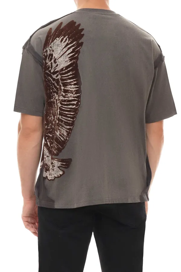 ФУТБОЛКА СЕРАЯ, Т/СЕРЫЕ НАКЛАДКИ, БАРХАТНЫЙ РИС. КРЫЛЬЯ