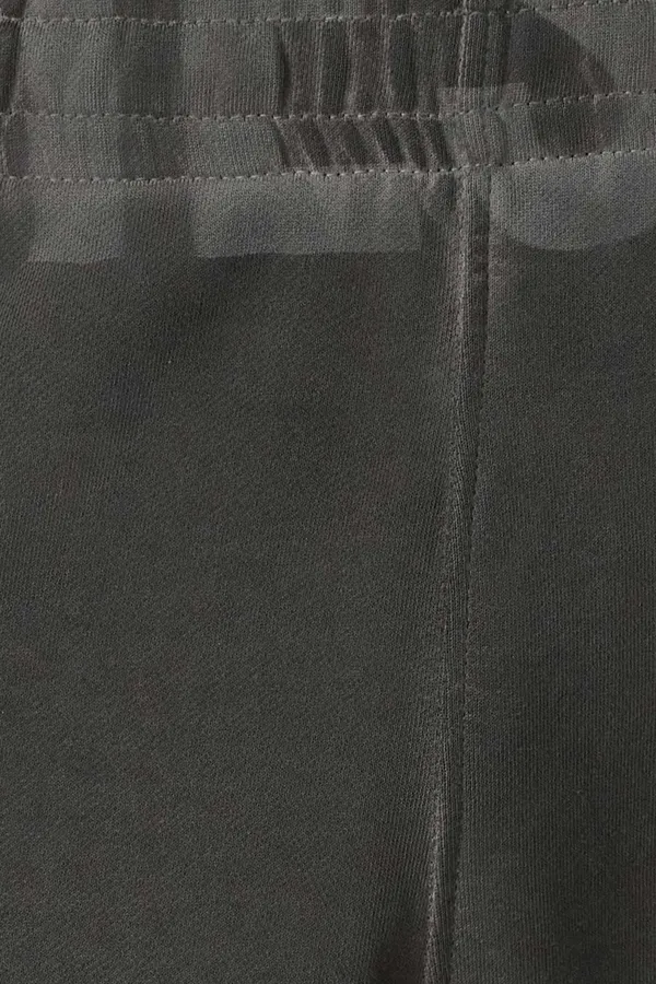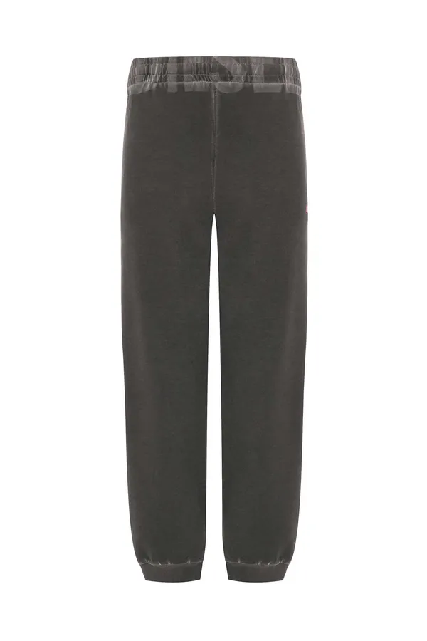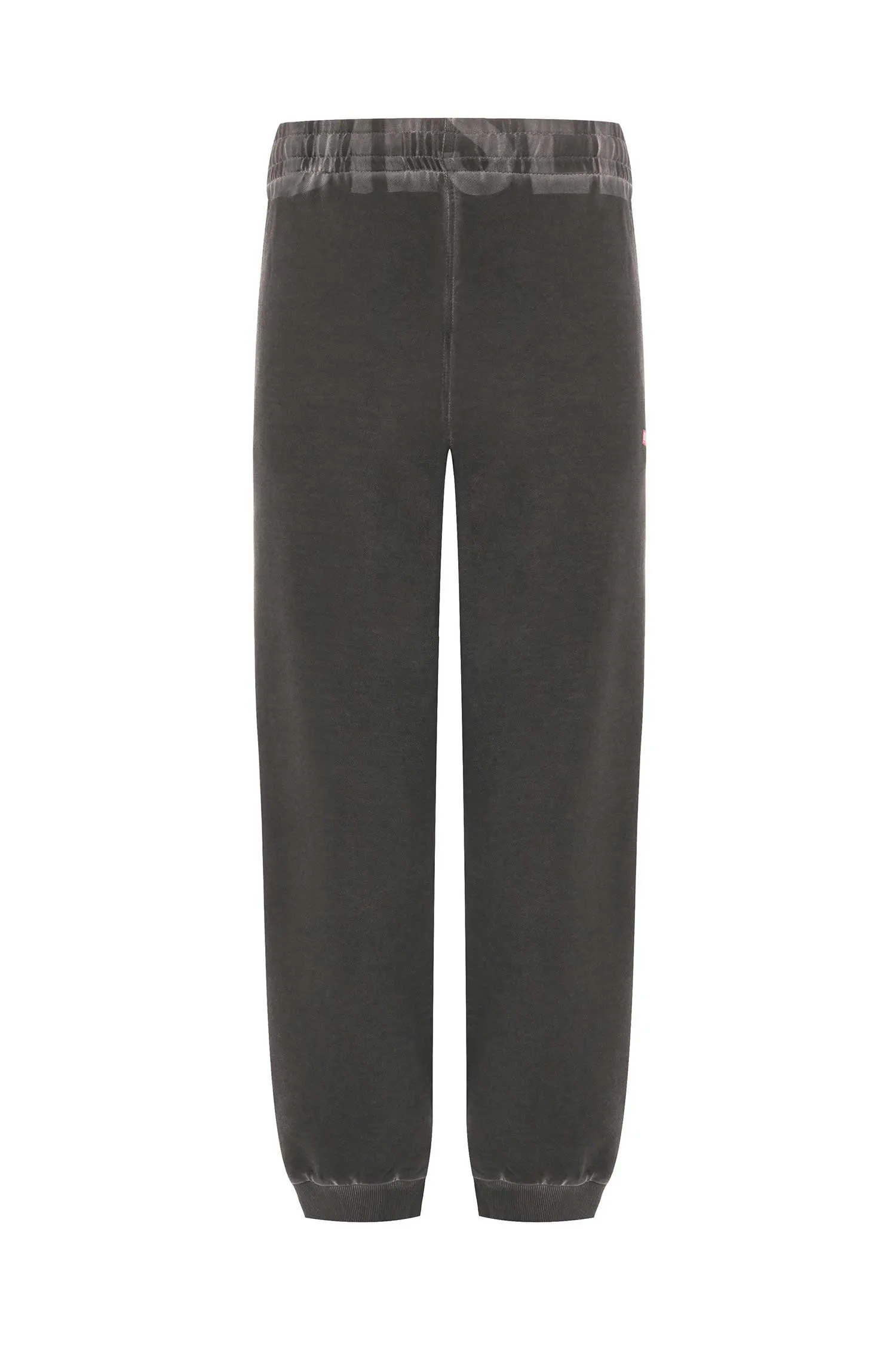 ШТАНЫ Т/СЕРЫЕ, ВЫВАРЕННЫЕ, НА КУЛИСКЕ, НА ПОЯСЕ КРУПНАЯ ЛОГО-НАДПИСЬ В ТОН, СЗАДИ НАКЛАДНЫЕ КАРМАНЫ, СНИЗУ МАНЖЕТЫ