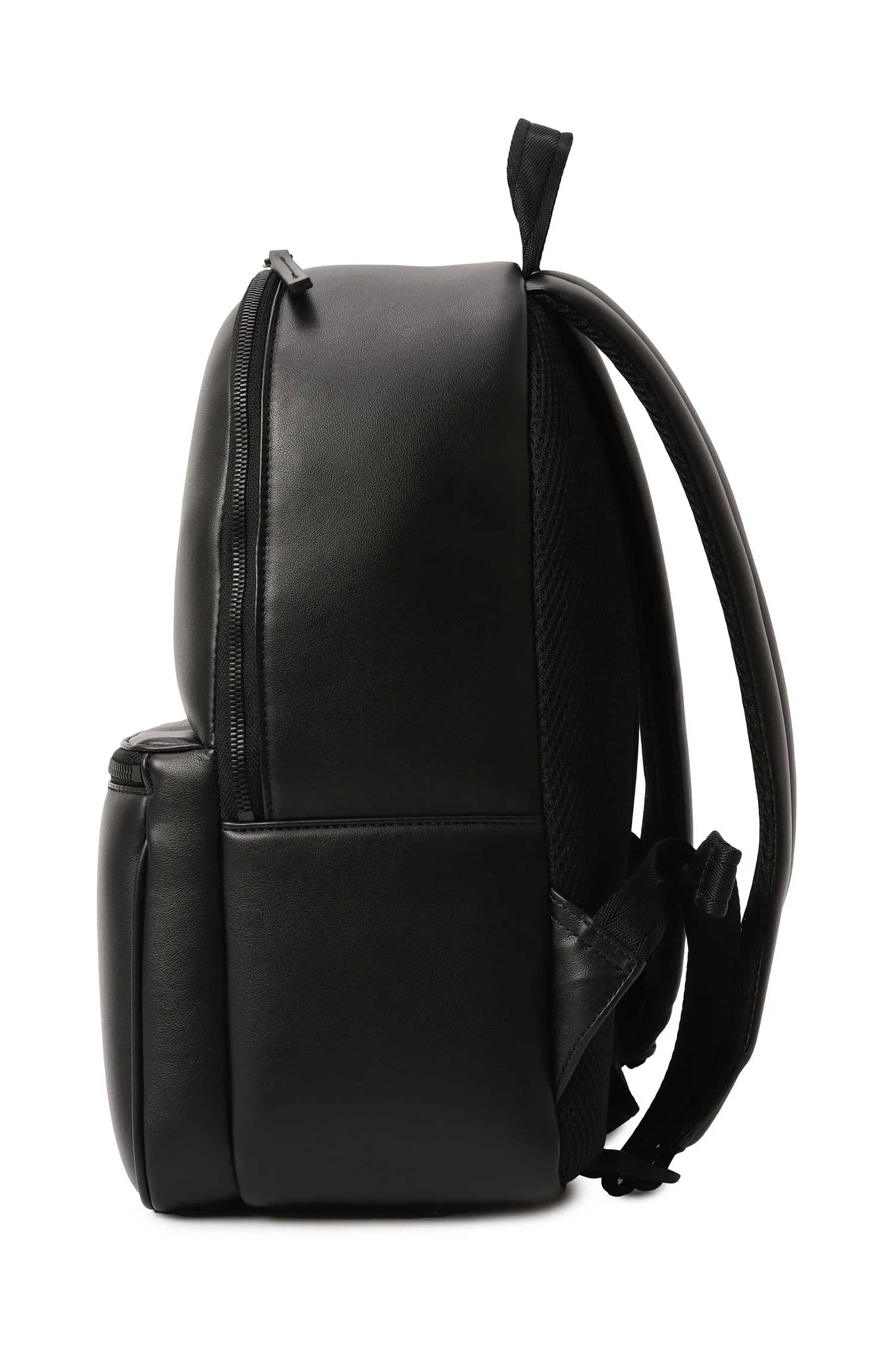 РЮКЗАК HOLI-D M ЧЁРНЫЙ ЭКОКОЖА, НАКЛАДНОЙ КАРМАН НА МОЛНИИ, ПЕРФОРИРОВ.МЕТАЛЛ.ЛОГО В ТОН, РУЧКА