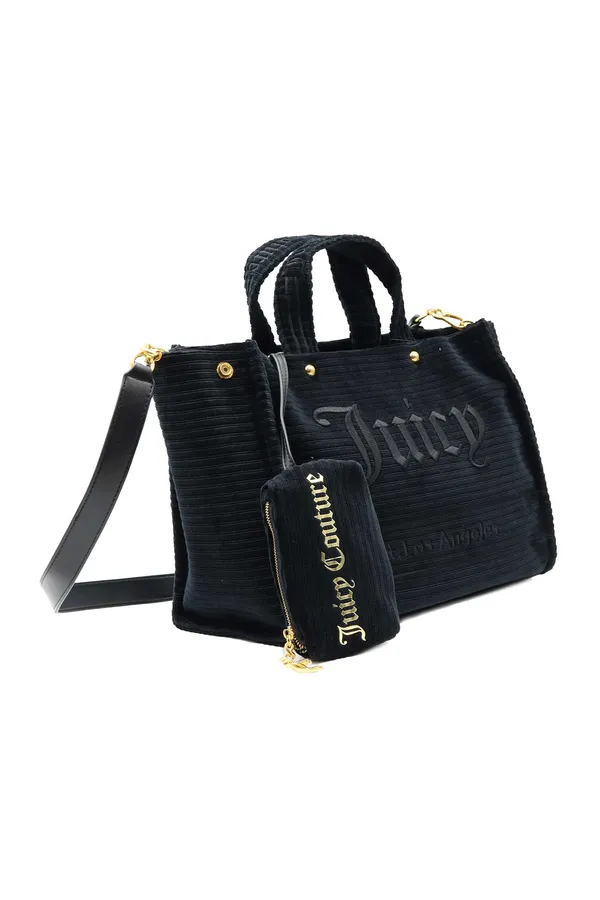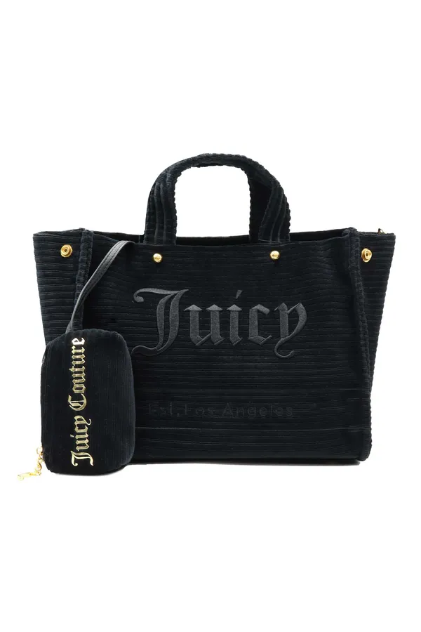 СУМКА-ШОПЕР IRIS СРЕДНЯЯ ЧЁРНАЯ ВЕЛЬВЕТ, ЛОГО-НАДПИСЬ В ТОН, КОШЕЛЁК