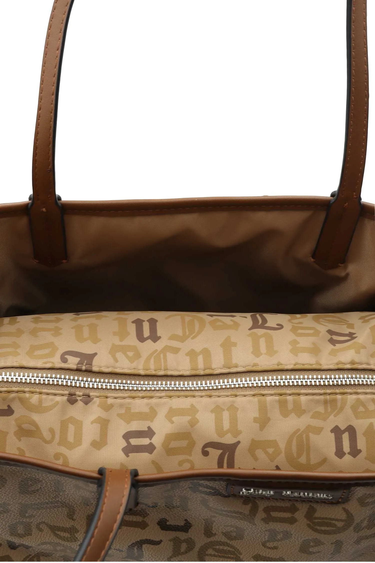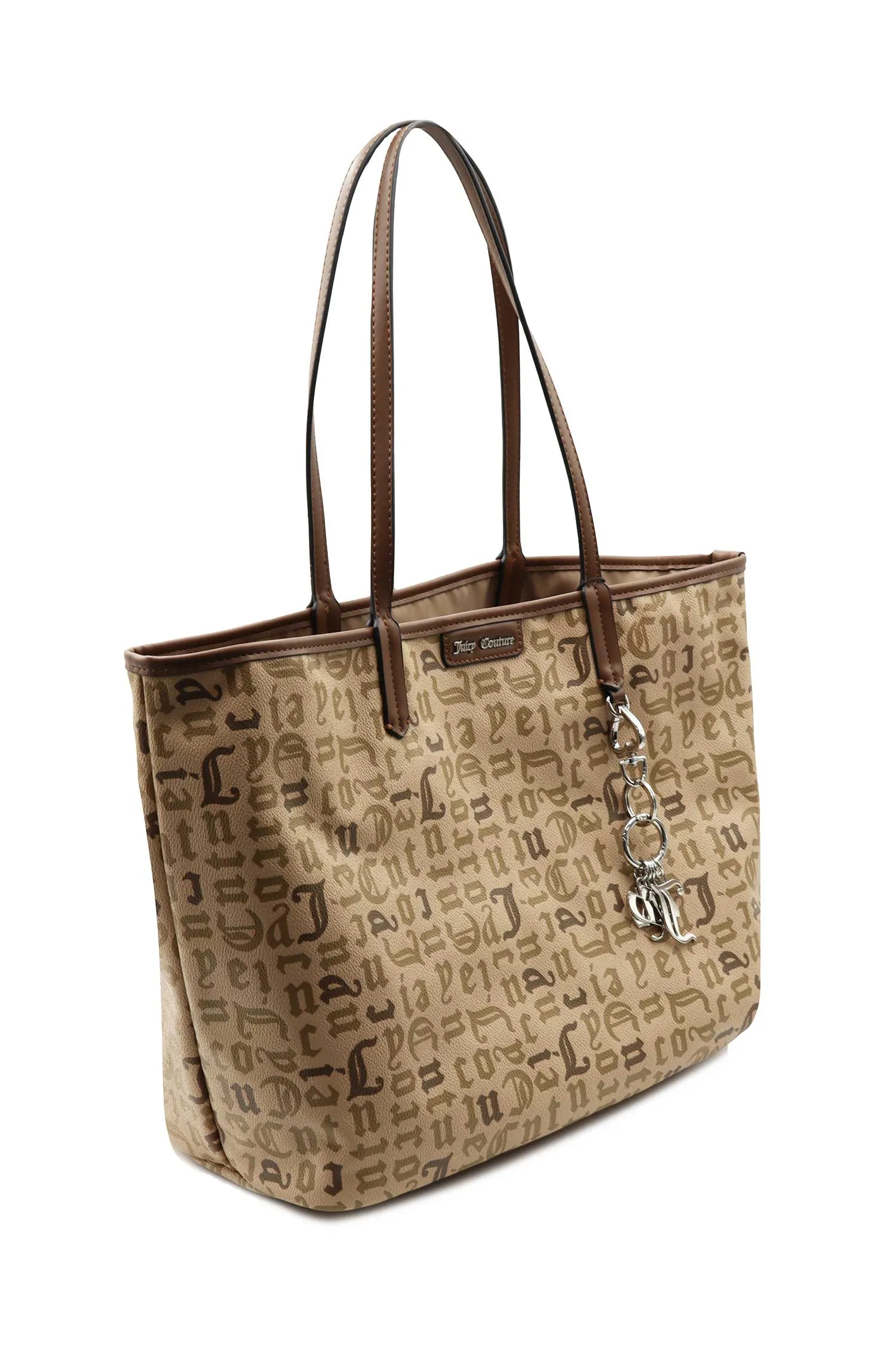 СУМКА JOAN 2В1 БЕЖЕВАЯ В ЛОГО, СЕРЕБРИСТЫЙ БРЕЛОК