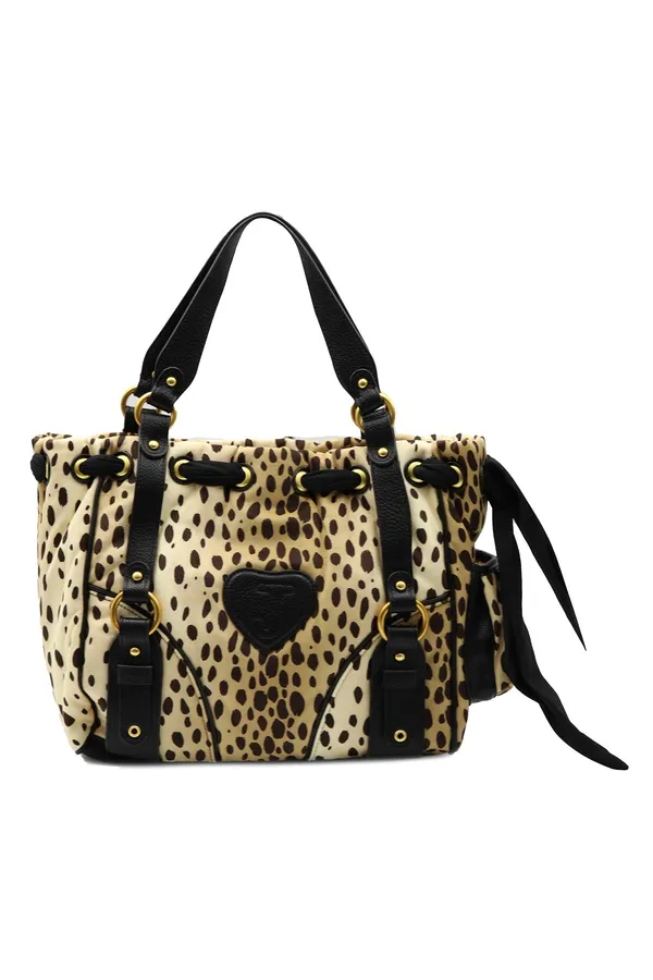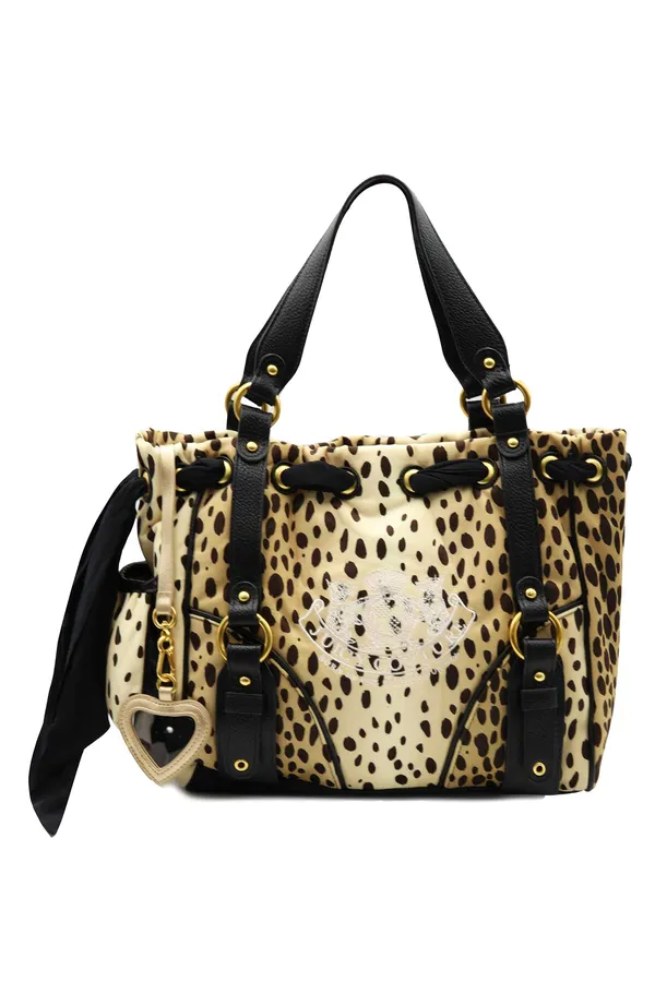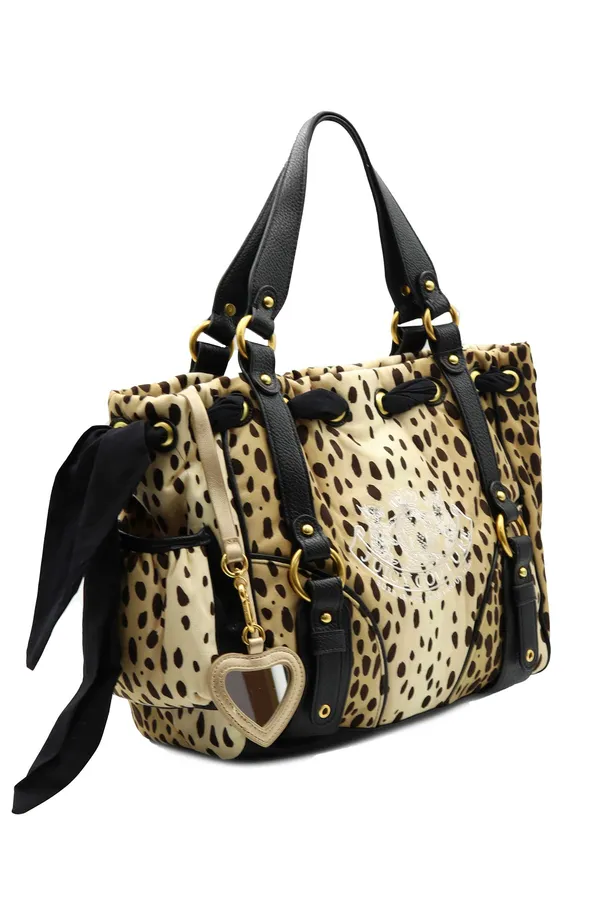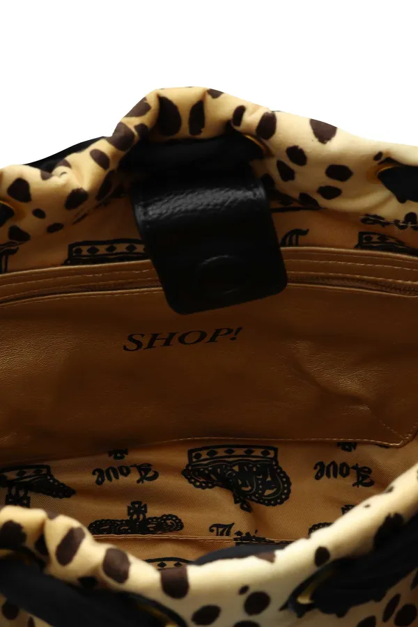 СУМКА DAYDREAMER БЕЖЕВО-КОРИЧНЕВАЯ, ПРИНТ ЛЕОПАРД, ЧЁРНЫЕ РУЧКИ, ЗЕРКАЛО, ЛОГО