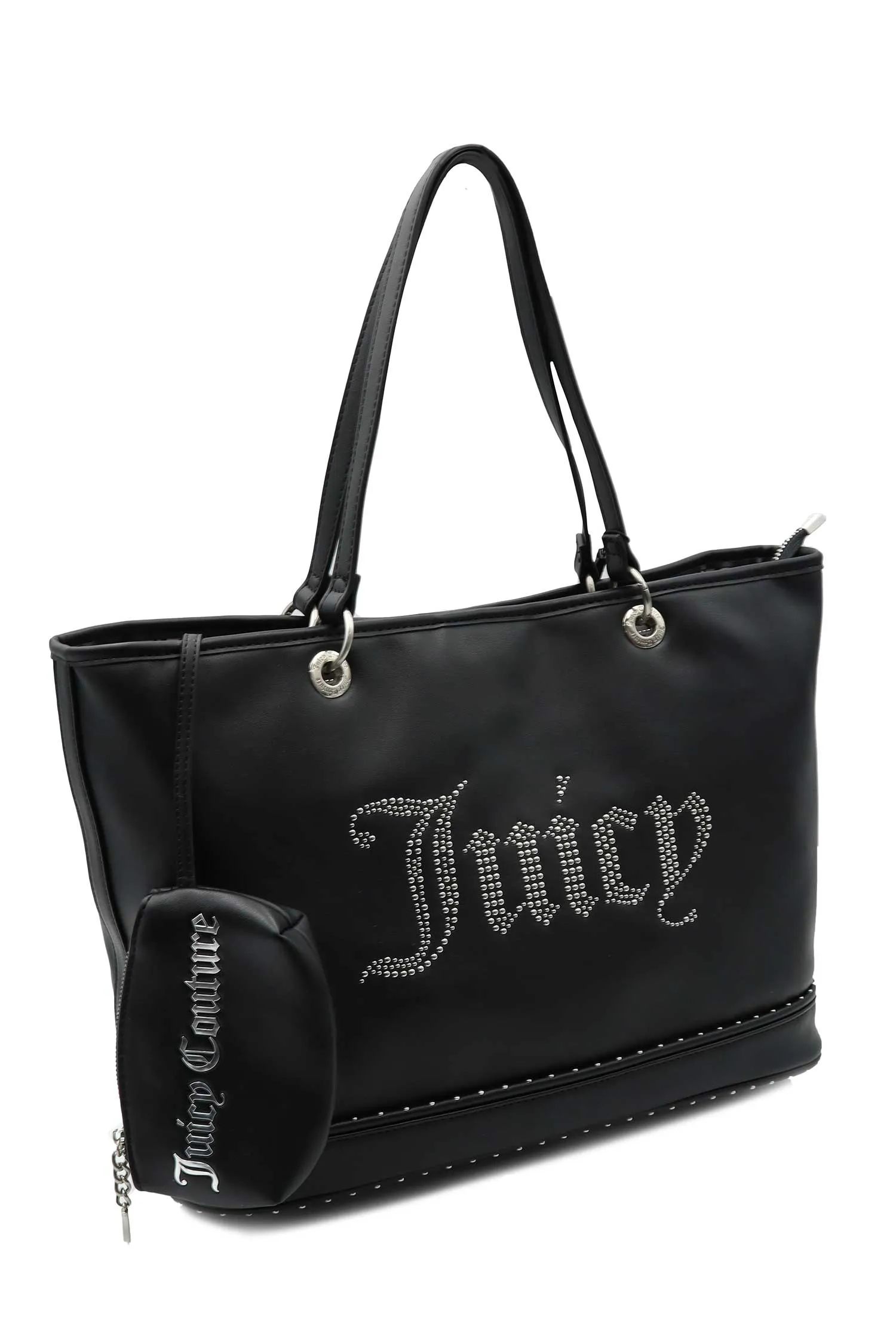 СУМКА-ШОПЕР KIMBERLY ЧЁРНАЯ БОЛЬШАЯ, КРУПНОЕ ЛОГО ИЗ СТРАЗ, КОШЕЛЁК