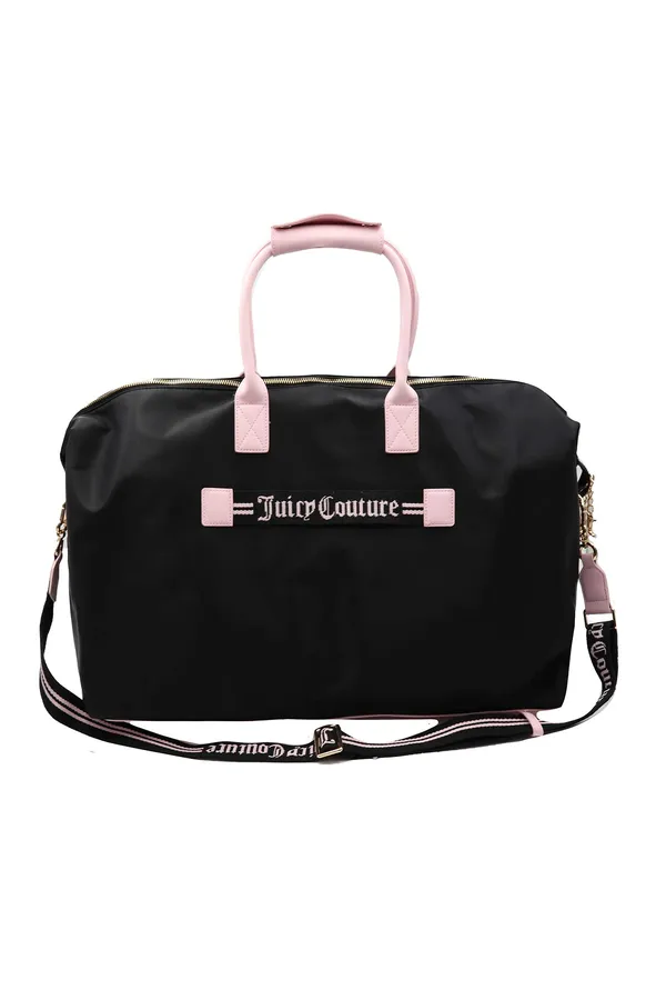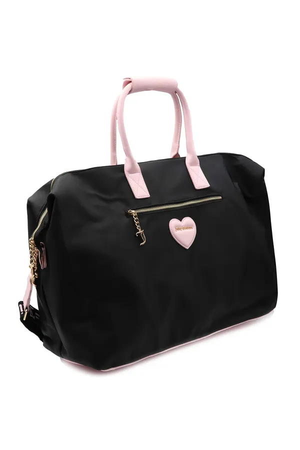 СУМКА WEEKENDERS ЧЁРНАЯ, ДОРОЖНАЯ, РОЗОВЫЕ РУЧКИ, НАШИВКА-СЕРДЦЕ, КАРМАН НА МОЛНИИ