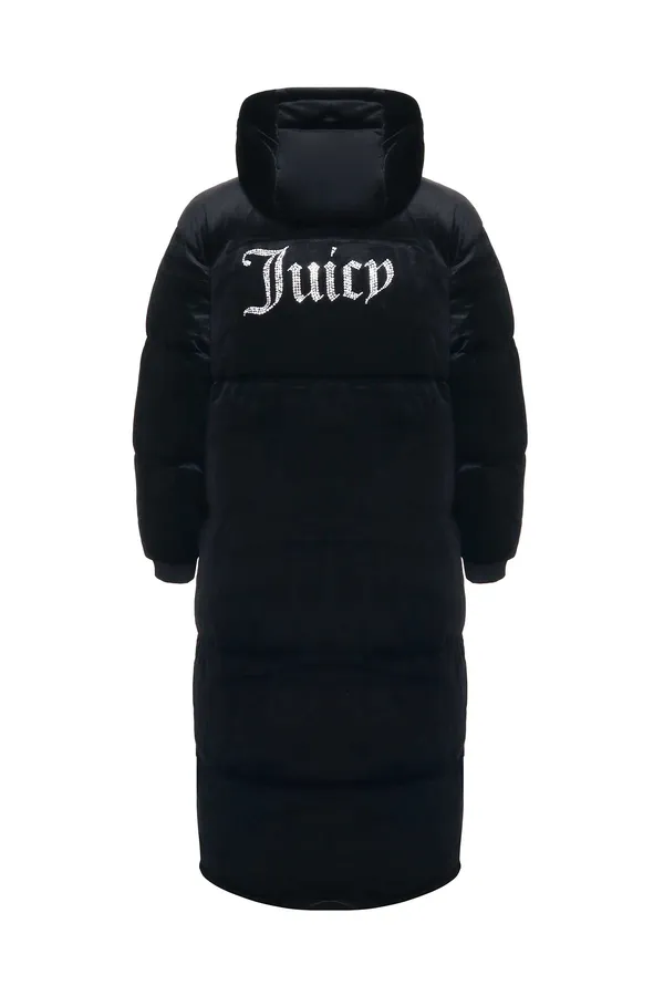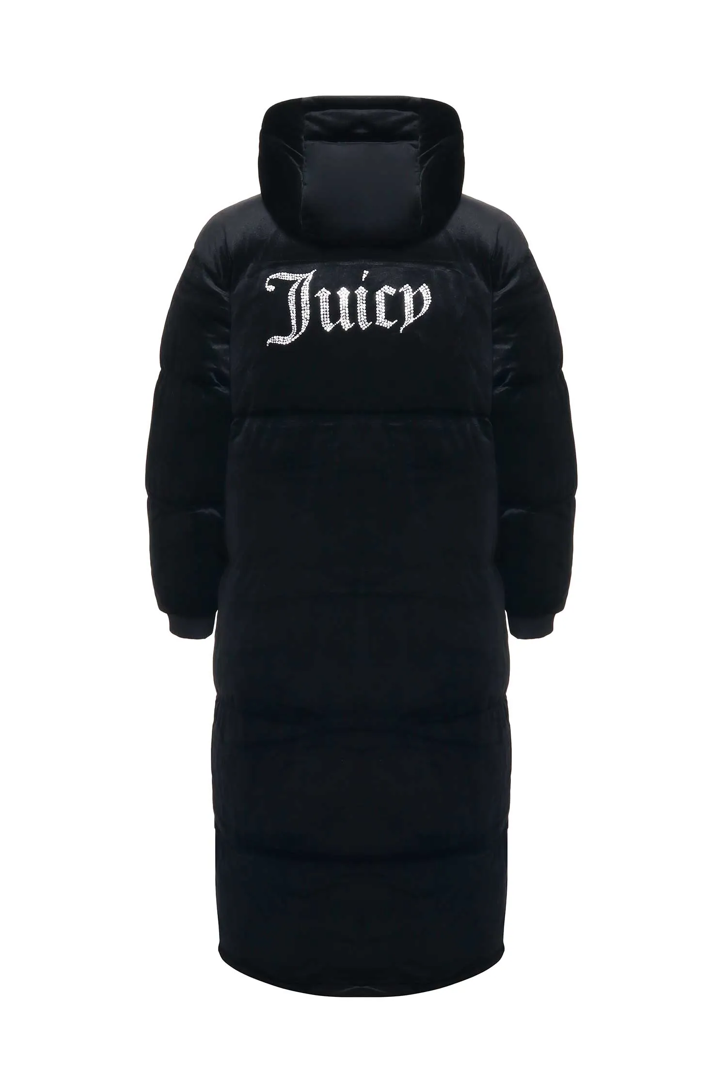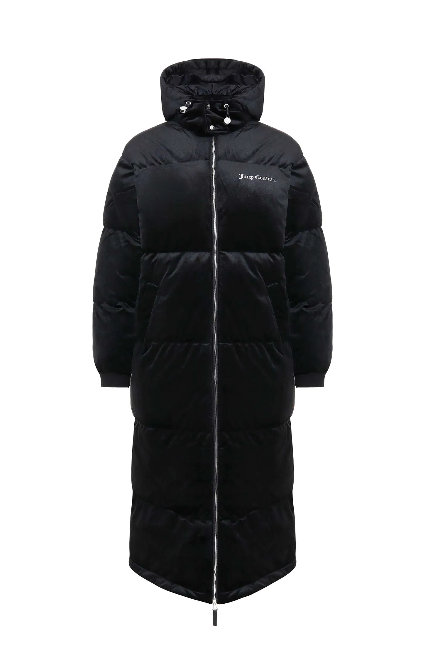 ПУХОВИК CENTURY LONGLINE ЧЁРНЫЙ ДЛИННЫЙ ВЕЛЮР, СТЁГАНЫЙ, С СИНТЕТ. НАПОЛН., ЛОГО-НАДПИСЬ ИЗ СТРАЗ, КАПЮШОН