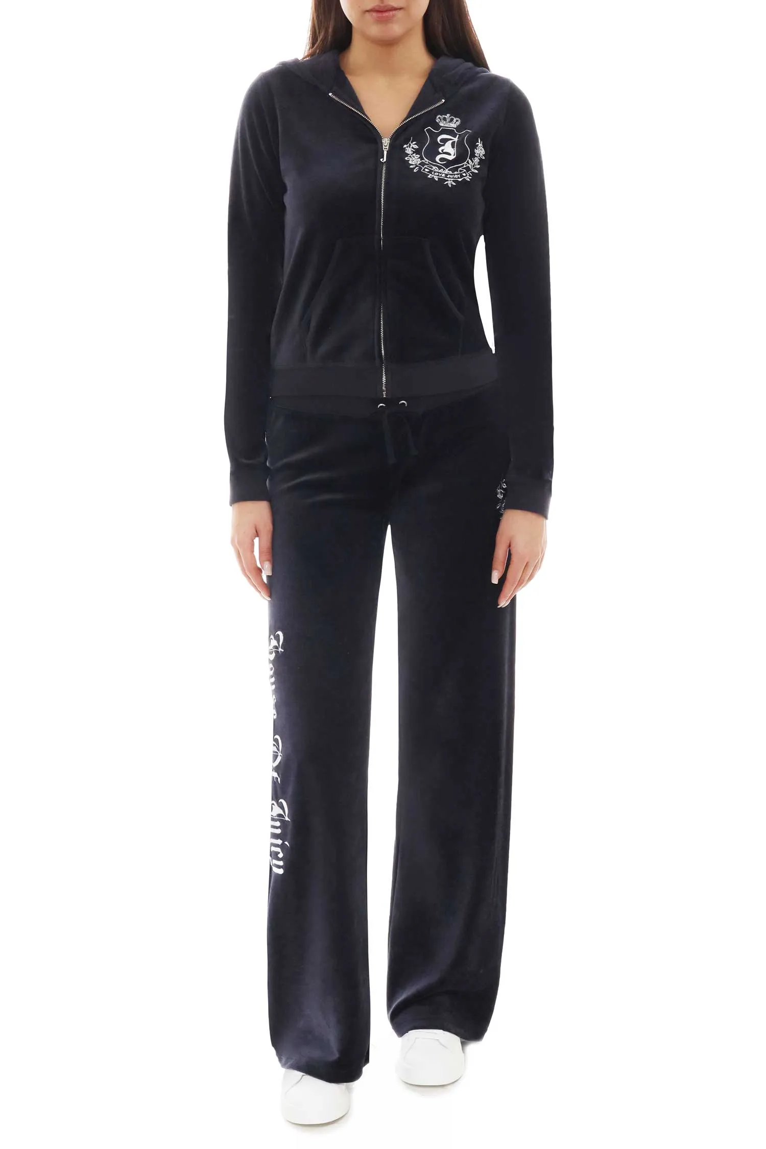 На размер S: объём груди 84 см, объём талии 78 см, объём бёдер 96 см, длина рукава 65 см, высота посадки 25 см, длина изделия (верх) 49 см, длина изделия (низ) 102 см