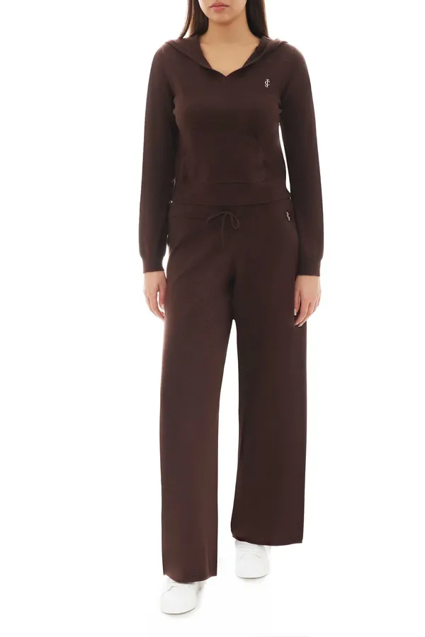 КОСТЮМ Т/КОРИЧНЕВЫЙ ТРИКОТАЖ, ХУДИ V-ВЫРЕЗ + ШТАНЫ ШИРОКИЕ НА КУЛИСКЕ, МАЛЕНЬКОЕ МЕТАЛЛ. ЛОГО