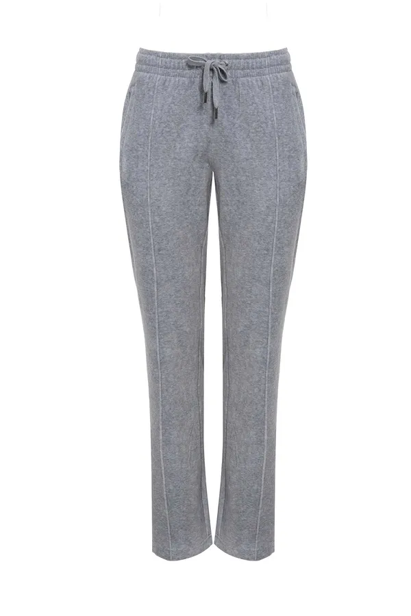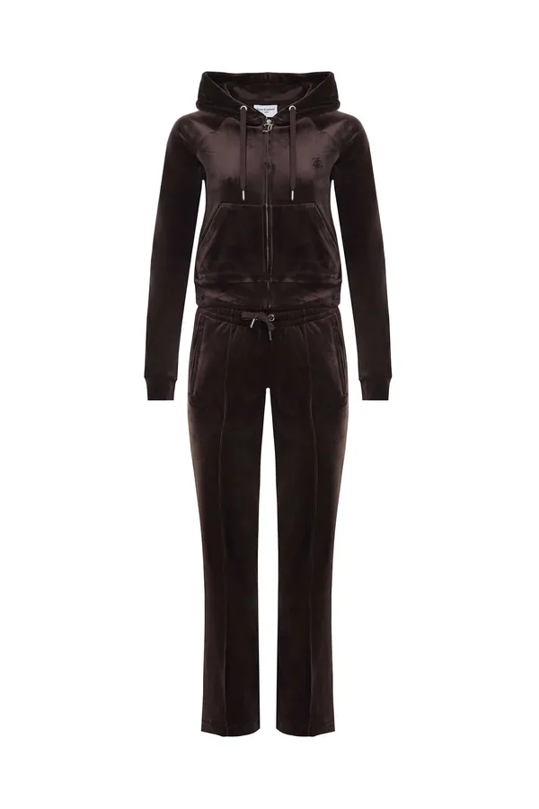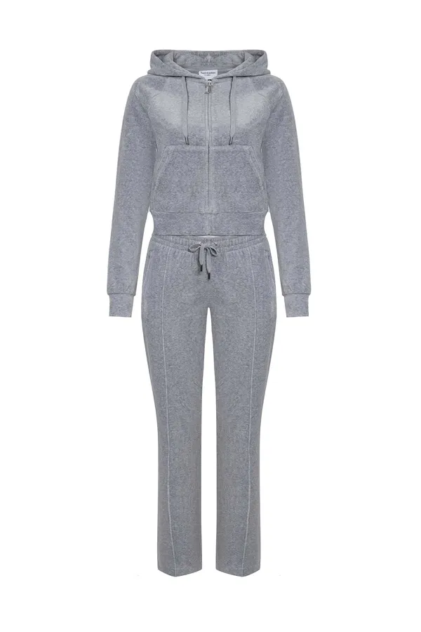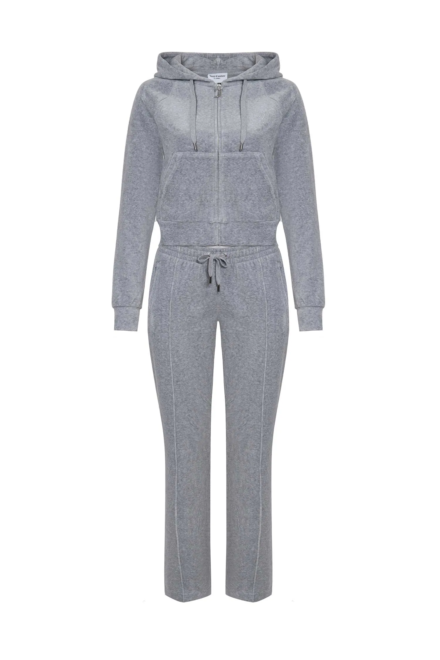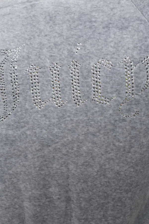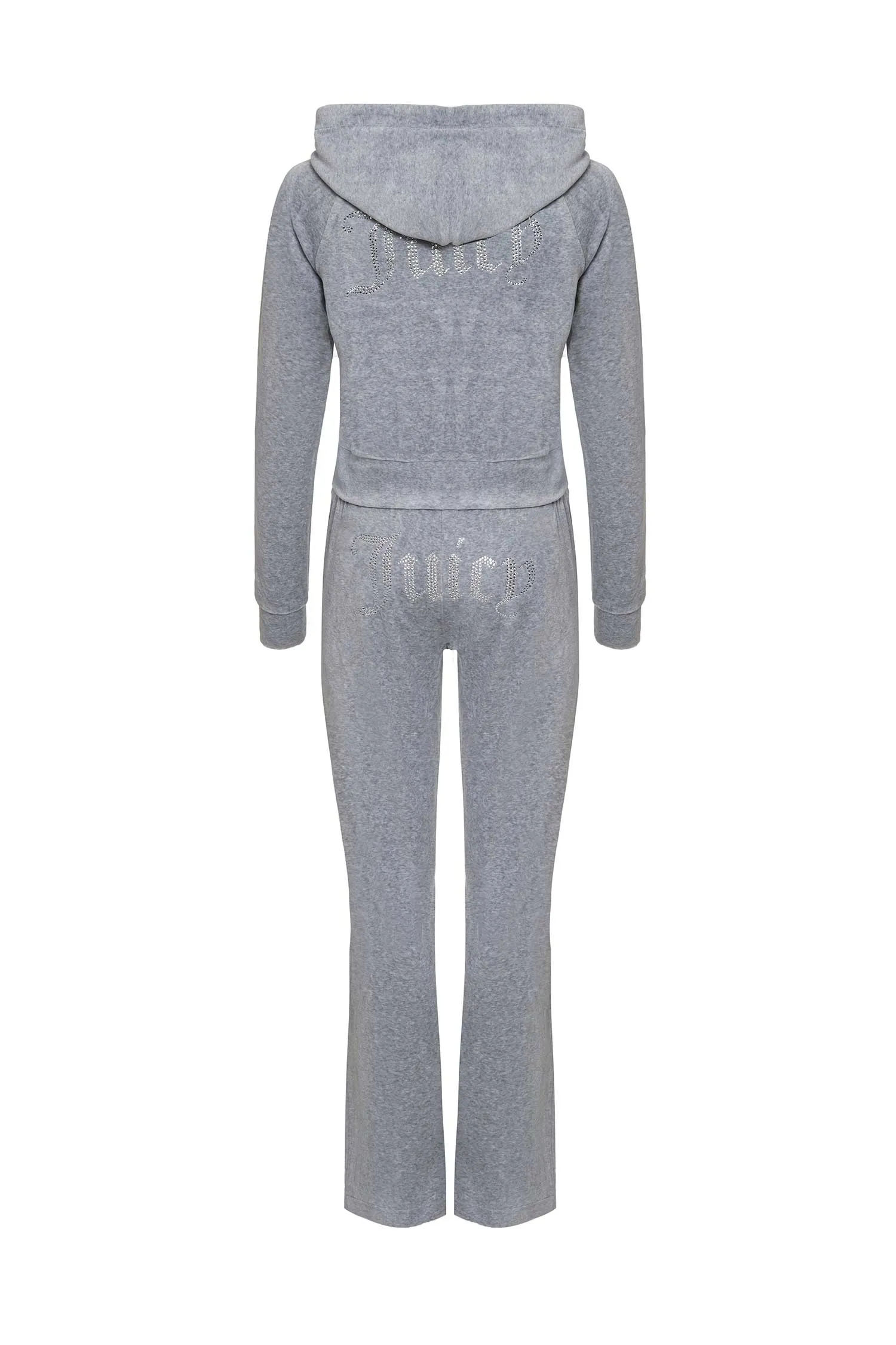 JUICY COUTURE КОСТЮМ MADISON TINA СЕРЫЙ ВЕЛЮР, ОЛИМПИЙКА + ШТАНЫ НА КУЛИСКЕ, ЛОГО ИЗ СТРАЗ НА ГРУДИ, ЛОГО-НАДПИСЬ ИЗ СТРАЗ СЗАДИ
