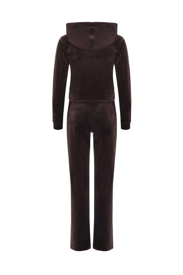 КОСТЮМ MADISON TINA Т/КОРИЧНЕВЫЙ ВЕЛЮР, ОЛИМПИЙКА + ШТАНЫ НА КУЛИСКЕ, ЛОГО ИЗ СТРАЗ НА ГРУДИ, ЛОГО-НАДПИСЬ ИЗ СТРАЗ СЗАДИ
