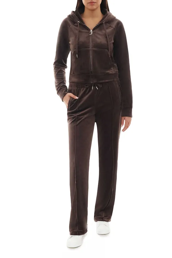 КОСТЮМ MADISON TINA Т/КОРИЧНЕВЫЙ ВЕЛЮР, ОЛИМПИЙКА + ШТАНЫ НА КУЛИСКЕ, ЛОГО ИЗ СТРАЗ НА ГРУДИ, ЛОГО-НАДПИСЬ ИЗ СТРАЗ СЗАДИ