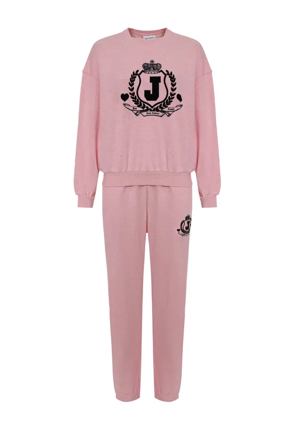 КОСТЮМ VENICE CREST РОЗОВЫЙ МЕЛАНЖ, СВИТШОТ + ШТАНЫ НА КУЛИСКЕ, ЧЁРНОЕ БАРХАТНОЕ ЛОГО