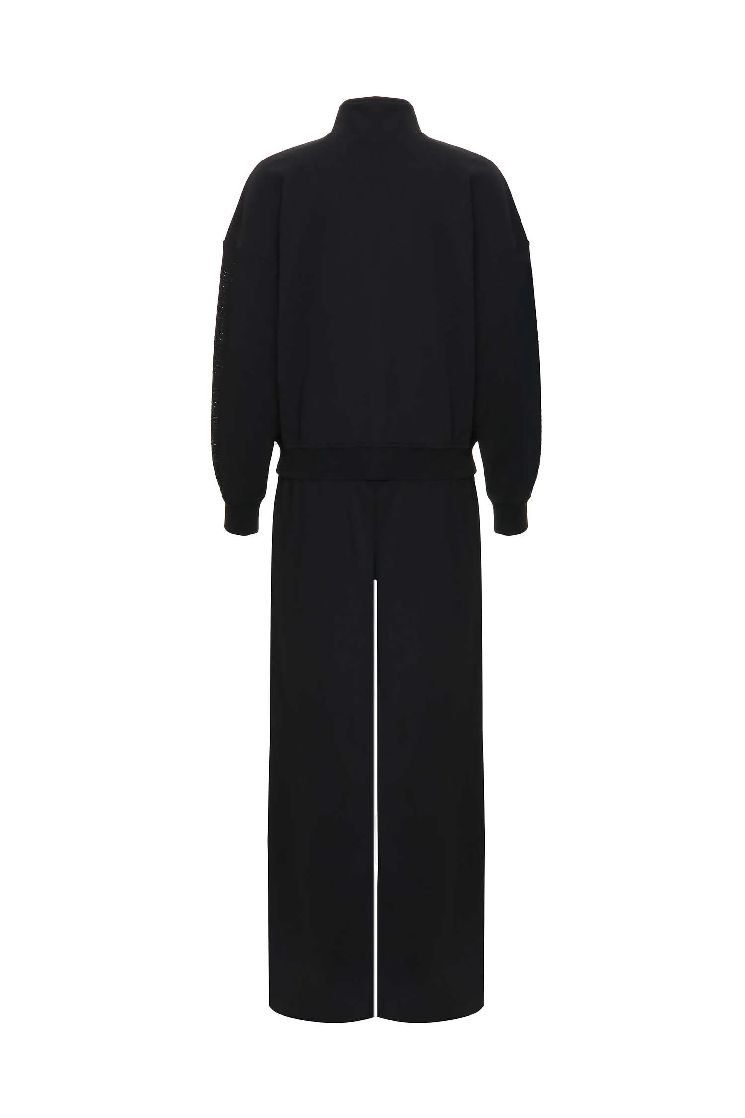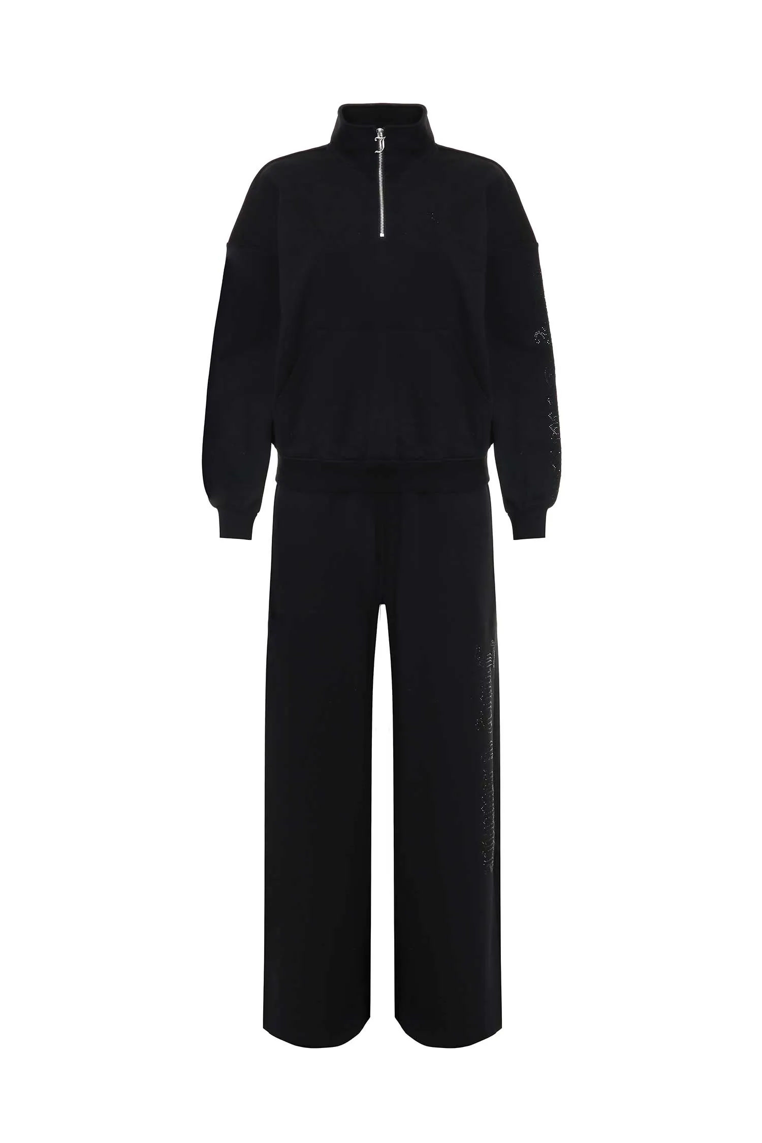 КОСТЮМ CASTELLA ANNEN ЧЁРНЫЙ, СВИТШОТ + ШТАНЫ НА КУЛИСКЕ , ВОРОТ-СТОЙКА НА МОЛНИИ, ЛОГО-НАДПИСЬ ИЗ СТРАЗ