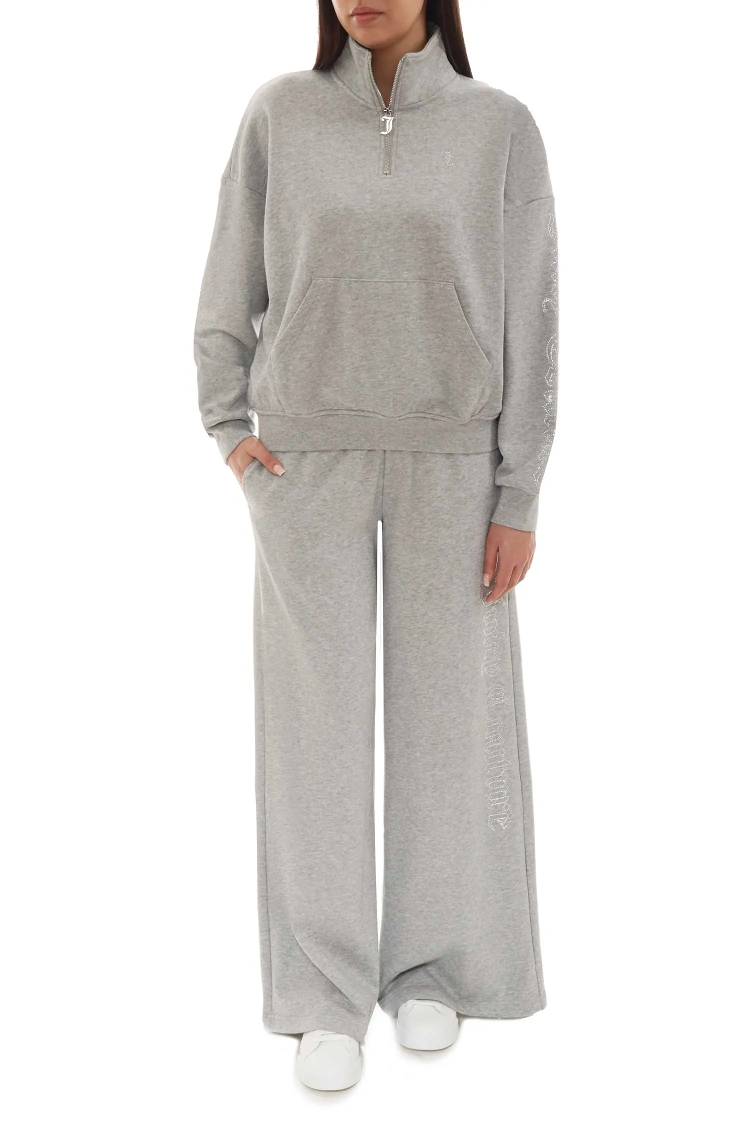 КОСТЮМ CASTELLA ANNEN СЕРЫЙ МЕЛАНЖ, СВИТШОТ + ШТАНЫ НА КУЛИСКЕ , ВОРОТ-СТОЙКА НА МОЛНИИ, ЛОГО-НАДПИСЬ ИЗ СТРАЗ
