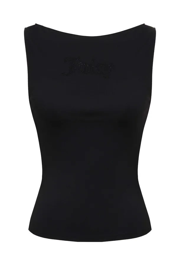 МАЙКА MIA ЧЁРНАЯ, НА ГРУДИ ЛОГО ИЗ СТРАЗ В ТОН