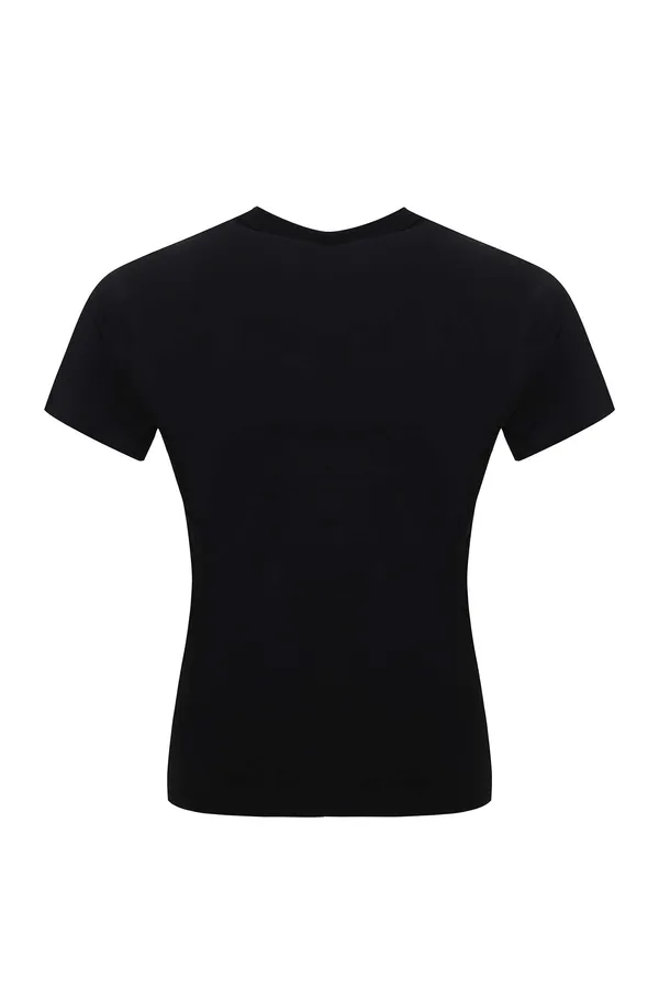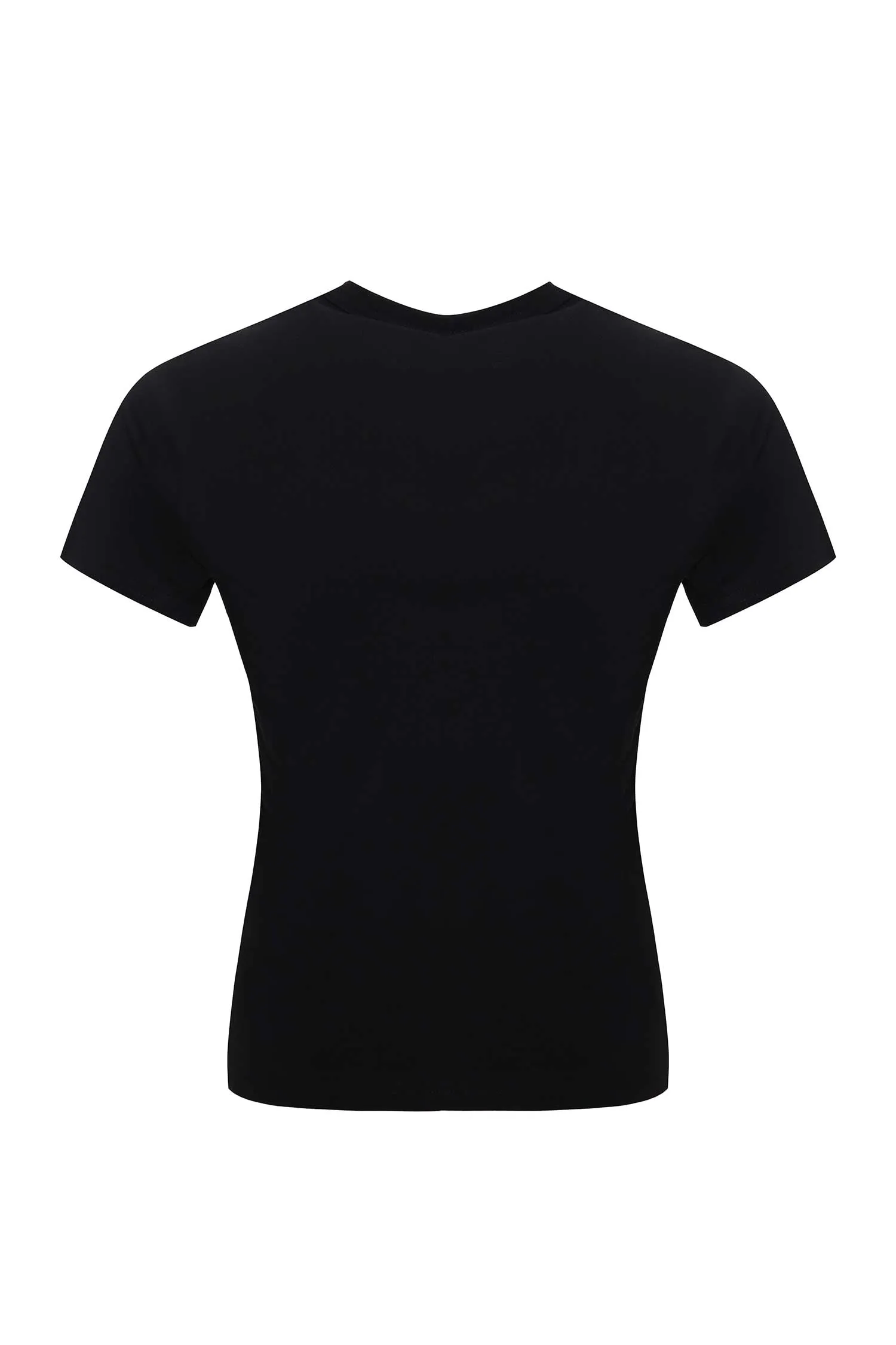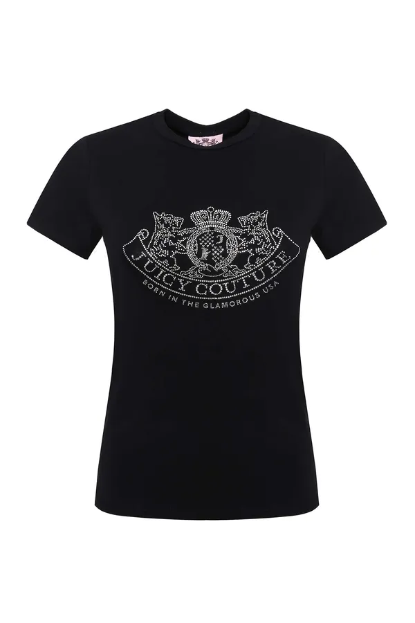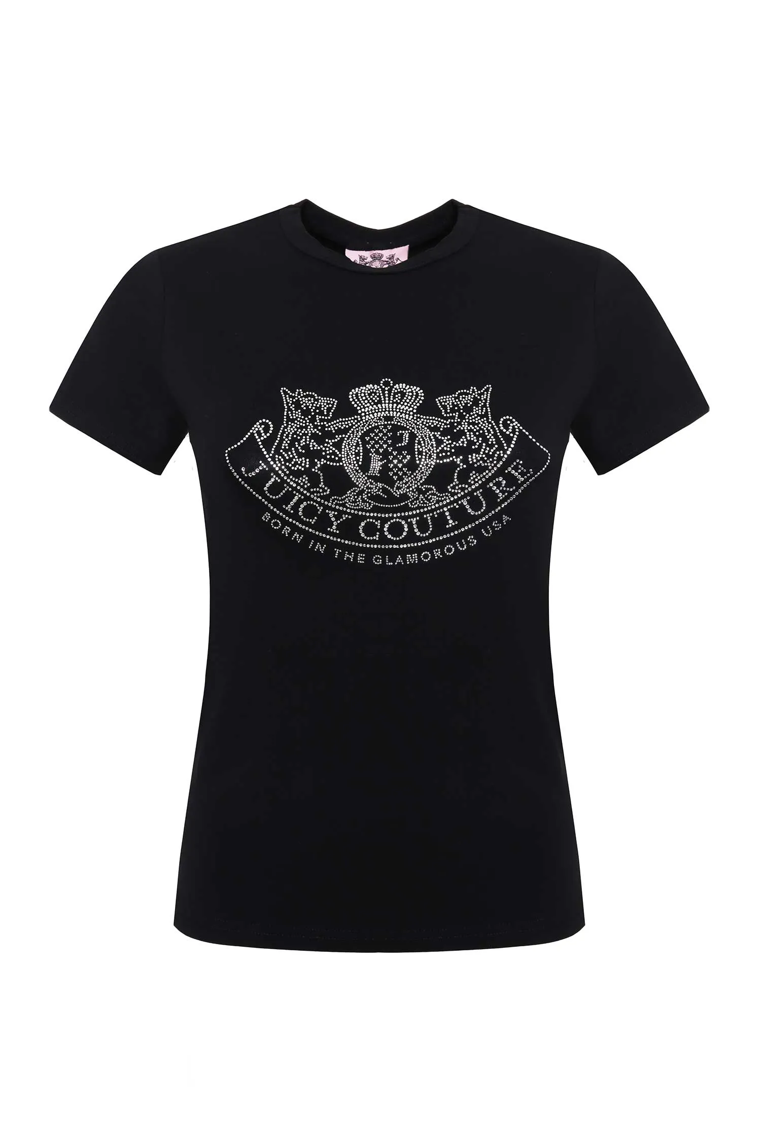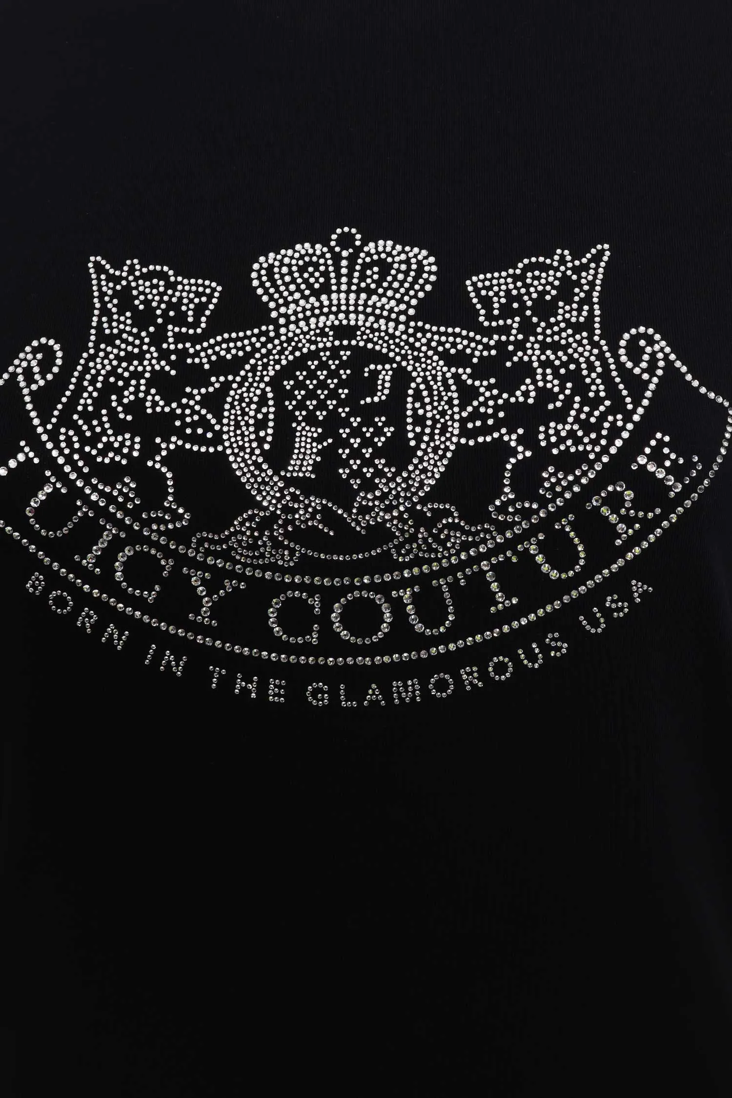 JUICY COUTURE ФУТБОЛКА DOG CREST HILTON ЧЁРНАЯ, НА ГРУДИ ЛОГО ИЗ СТРАЗ