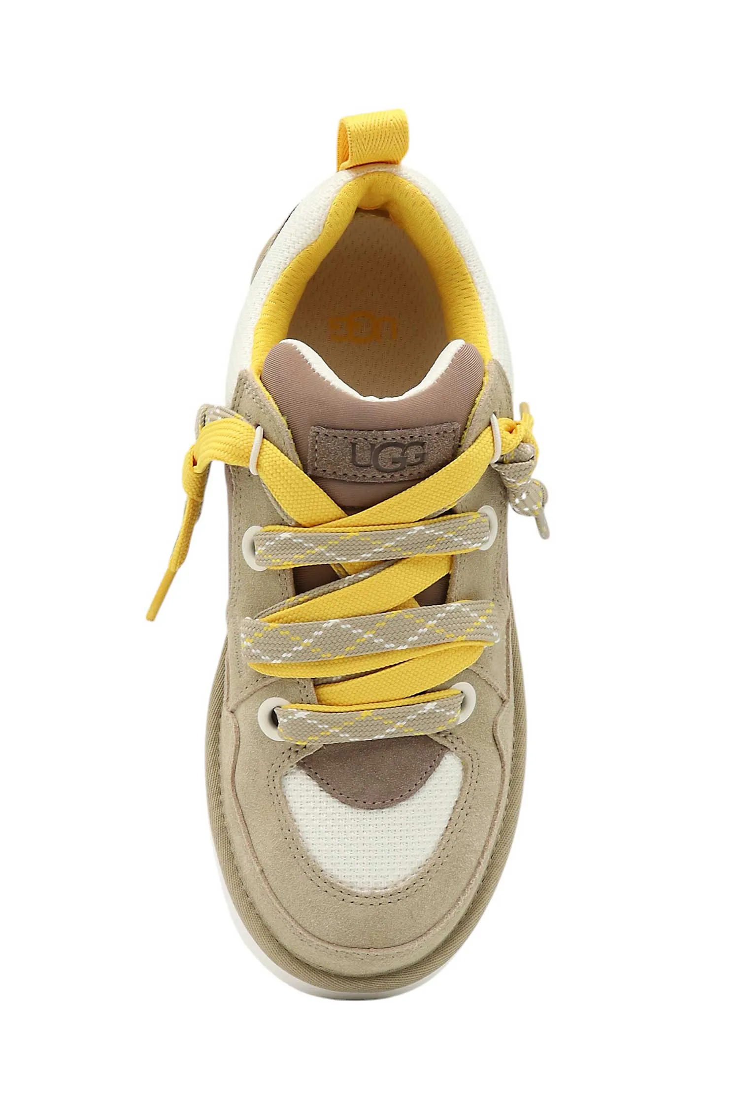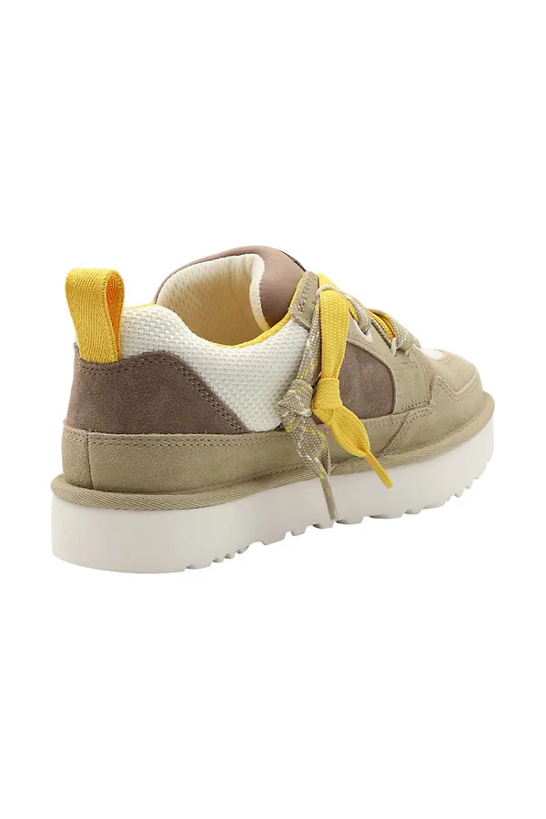 КЕДЫ LO LOWMEL БЕЛО-БЕЖЕВО-КОРИЧНЕВЫЕ, КОМБИНИР., ТЕКСТИЛЬ+ЗАМША, ДВОЙНАЯ ШНУРОВКА, ЖЁЛТЫЕ/БЕЖЕВЫЕ ШНУРКИ, К=2,5