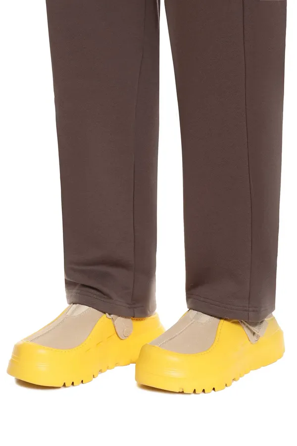 UGG БОТИНКИ PEAKMOD LOWCUT БЕЖЕВО-ЖЁЛТЫЕ, КОМБИНИР., ЗАМША+НЕОПРЕН, СЪЁМНЫЙ РЕМЕШОК НА ЛИПУНЕ, ОБЪЁМНАЯ ЛИТАЯ ПОДОШВА, К=5