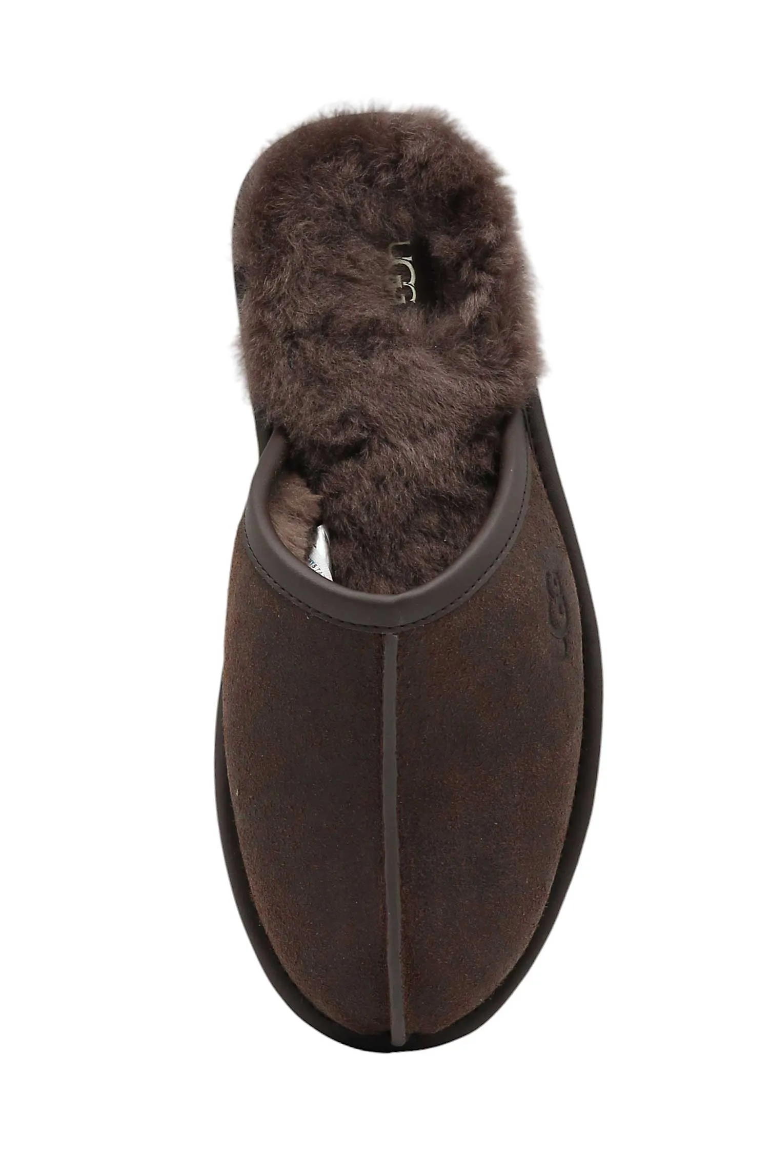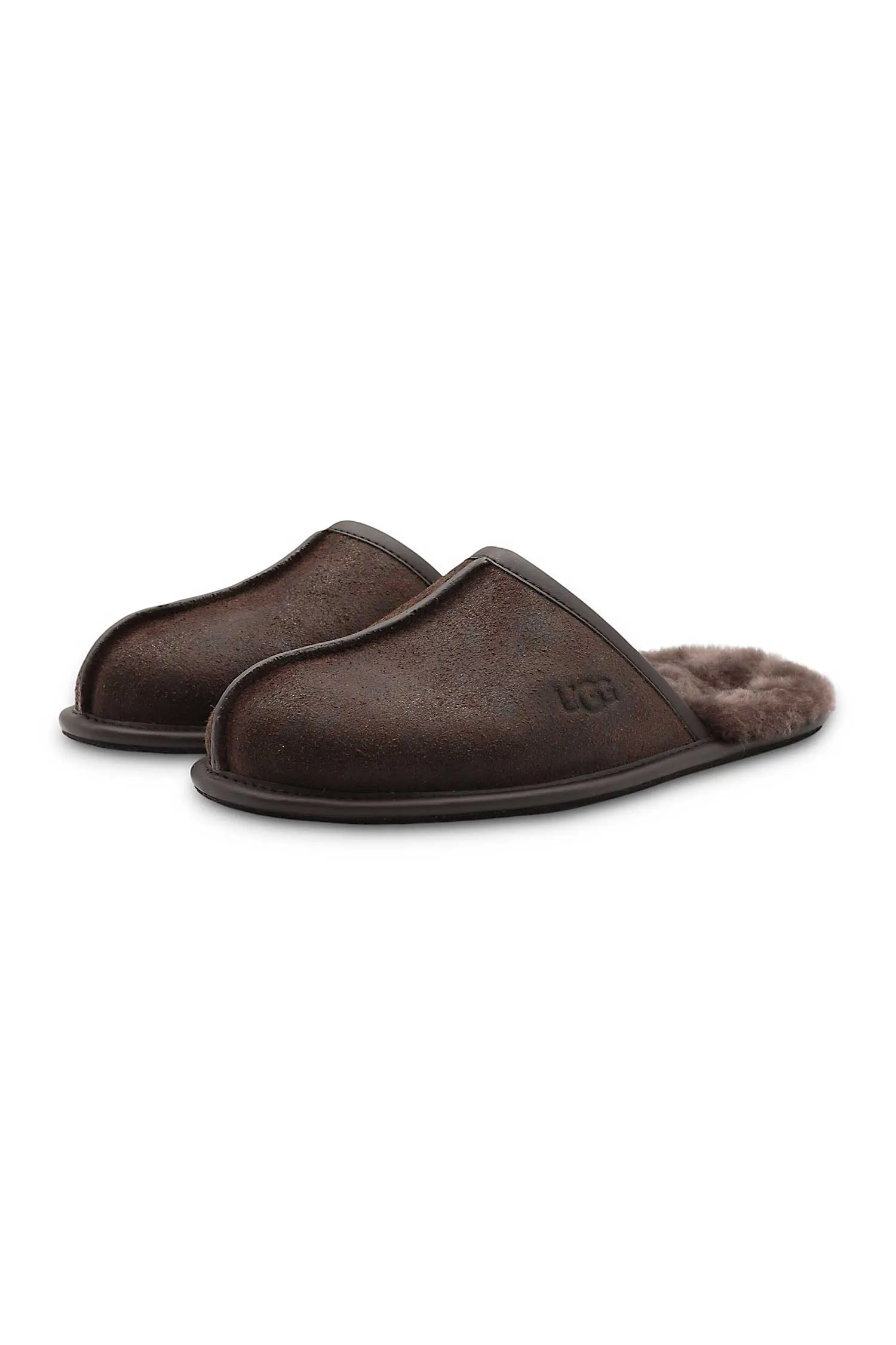 ТАПОЧКИ SCUFF LEATHER DISTRESSED Т/КОРИЧНЕВЫЕ ЗАМША, КОЖАНАЯ ОКАНТОВКА, МЕХ В ТОН, К=0,8