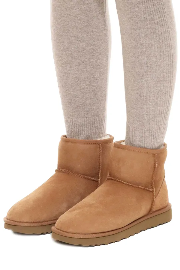 УГГИ CLASSIC MINI II СВ/КОРИЧНЕВЫЕ ЗАМША, МОЛОЧНЫЙ МЕХ, К=2