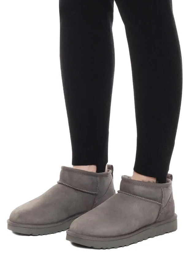 УГГИ CLASSIC ULTRA MINI СЕРЫЕ ЗАМША, МЕХ В ТОН, К=2