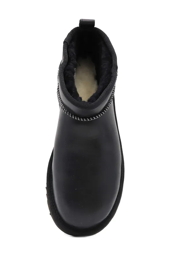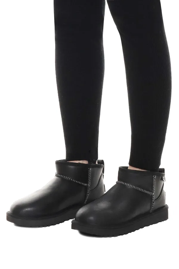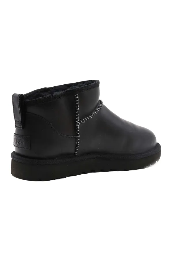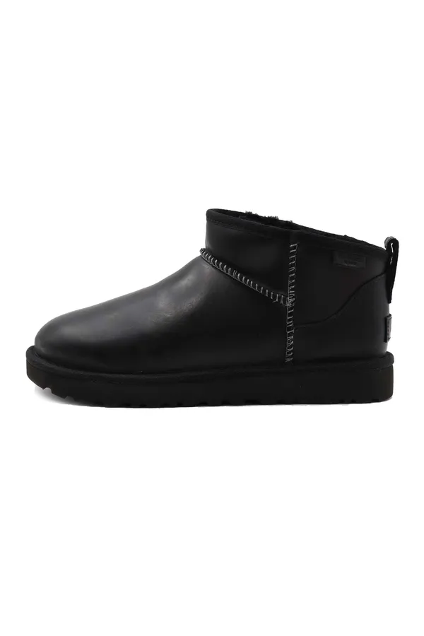 УГГИ CLASSIC ULTRA MINI LEATHER REGEN ЧЁРНЫЕ КОЖА, МЕХ В ТОН, К=2