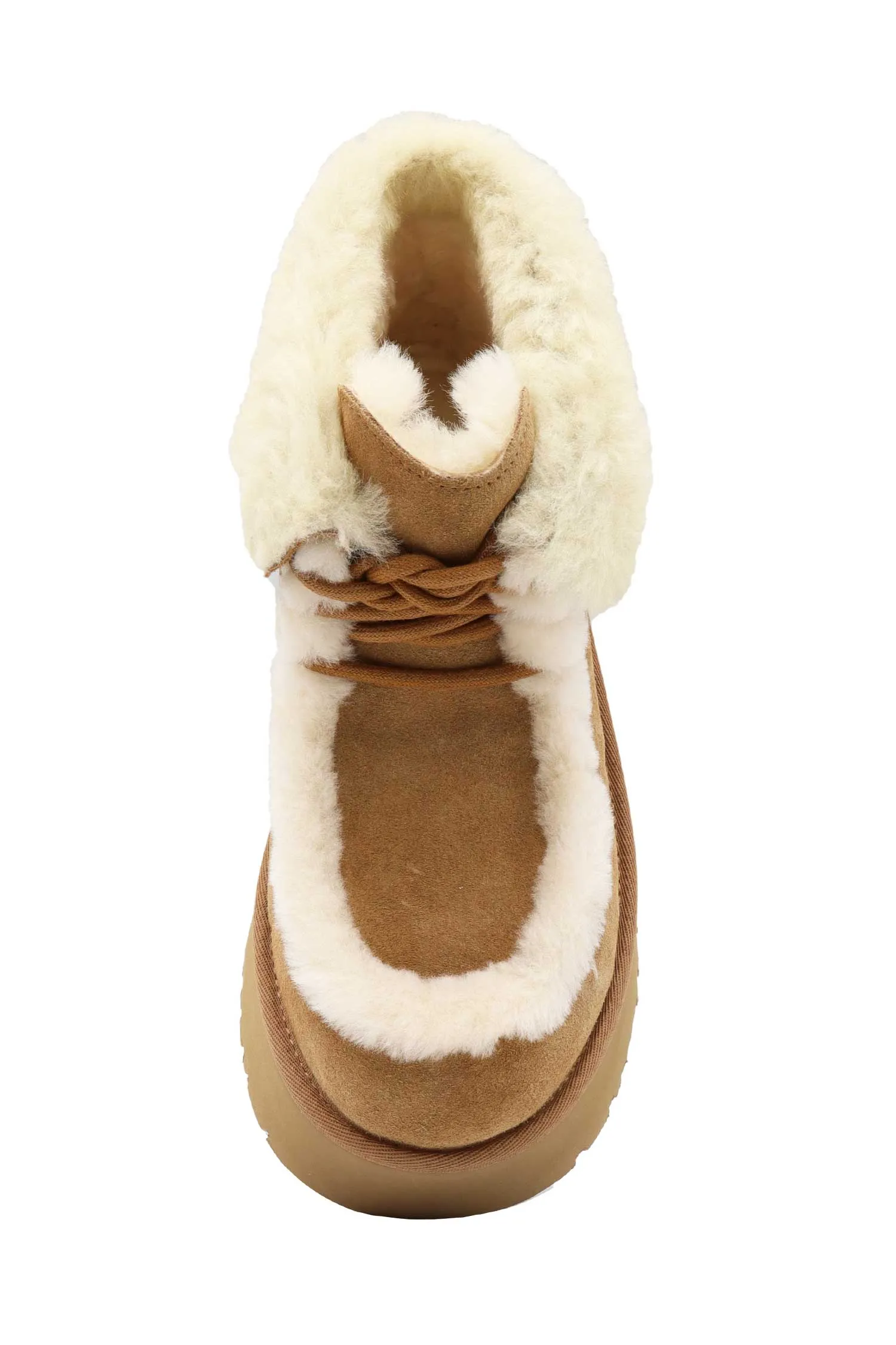 БОТИНКИ ESMEE LACE UP СВ/КОРИЧНЕВЫЕ ЗАМША, НА ШНУРОВКЕ, МОЛОЧНЫЙ МЕХ, К=7