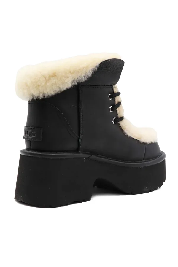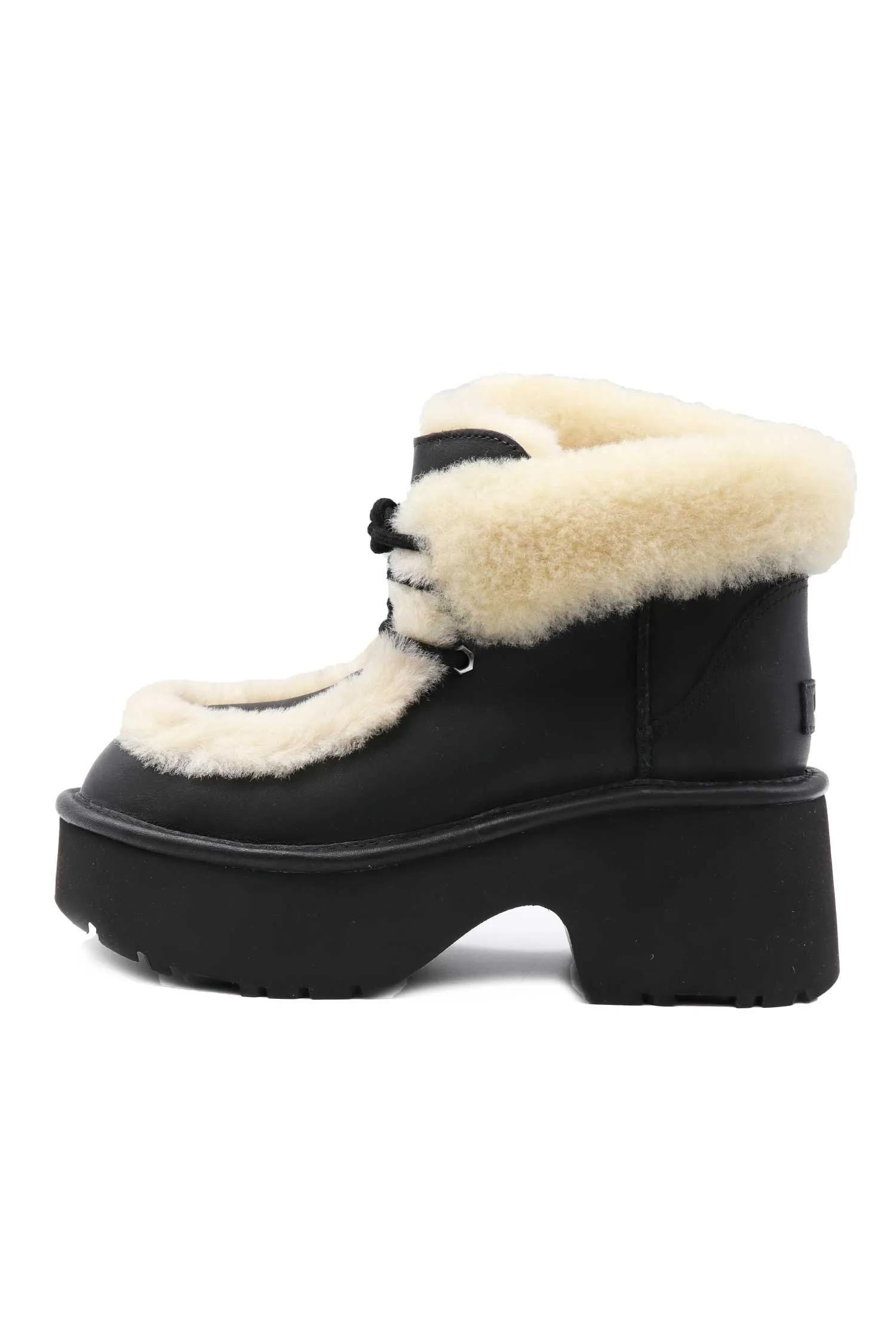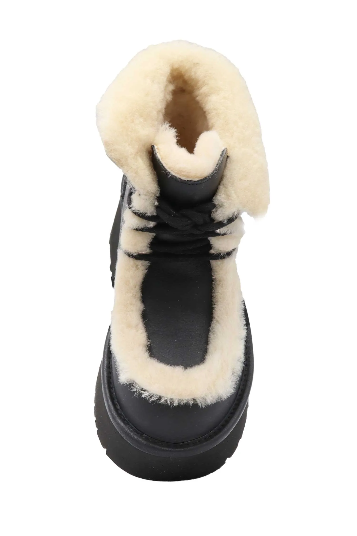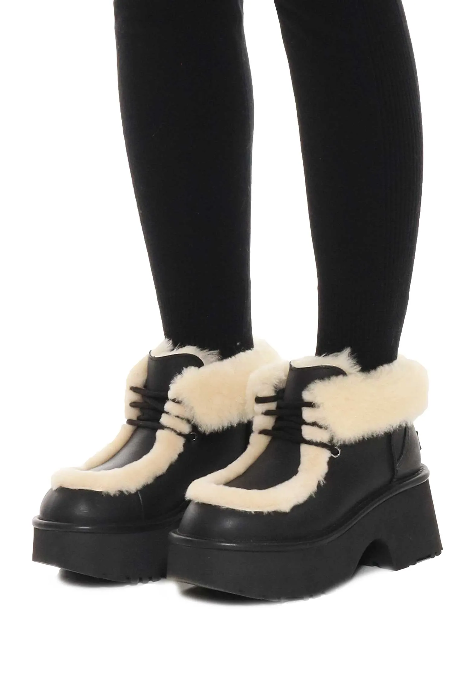 БОТИНКИ ESMEE LEATHER LACE UP ЧЁРНЫЕ КОЖА, НА ШНУРОВКЕ, МОЛОЧНЫЙ МЕХ, К=7