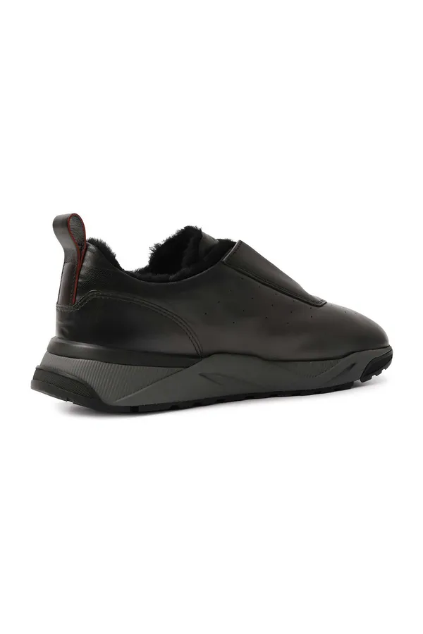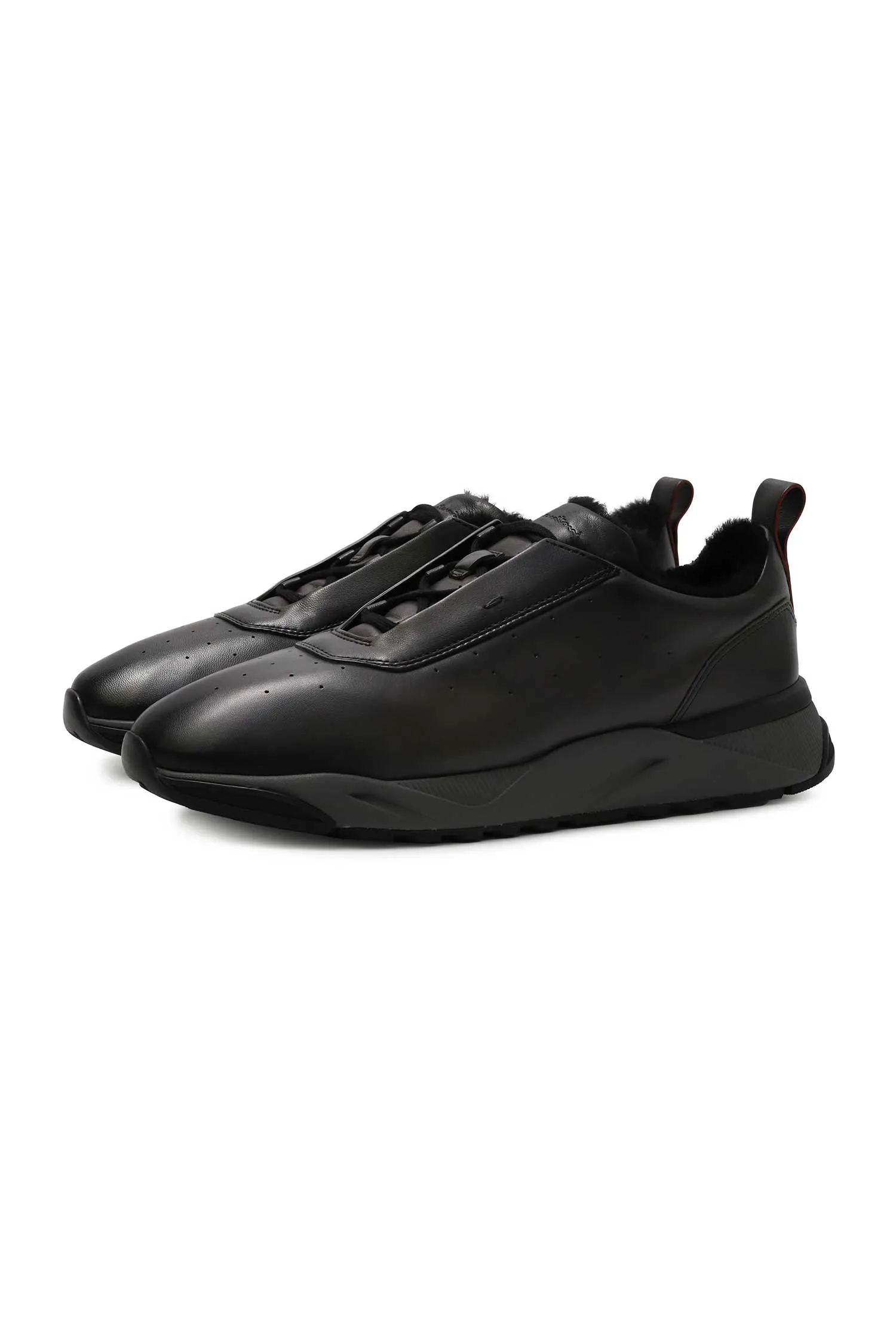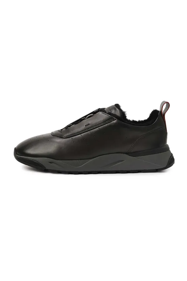 SANTONI КРОССОВКИ NEW-LEAS16 Т/СЕРЫЕ КОЖА, ПЕРФОРАЦИЯ, МЕХ В ТОН, СЕРАЯ ПОДОШВА, К=5