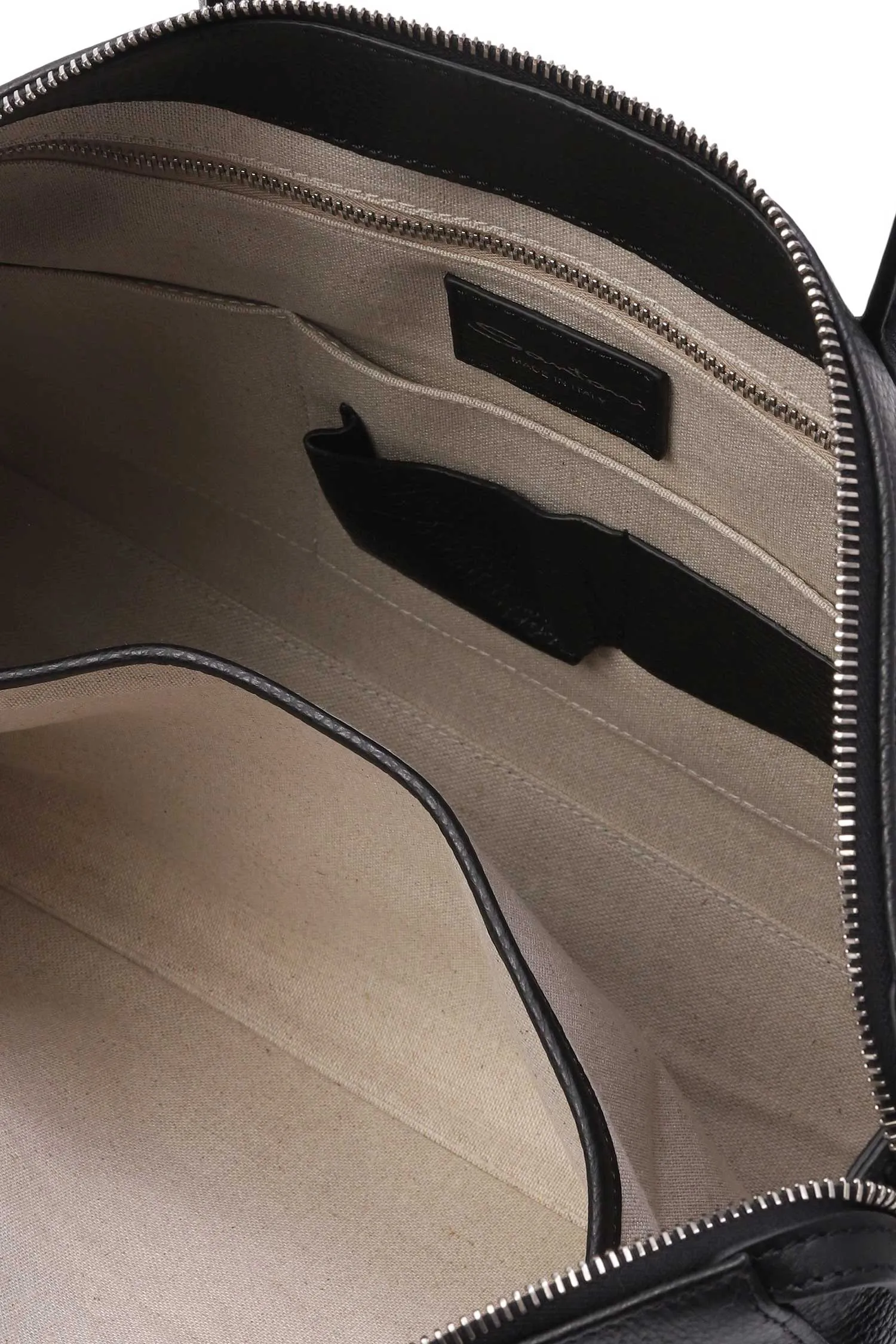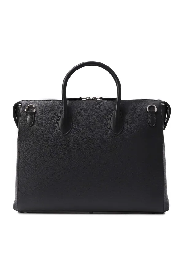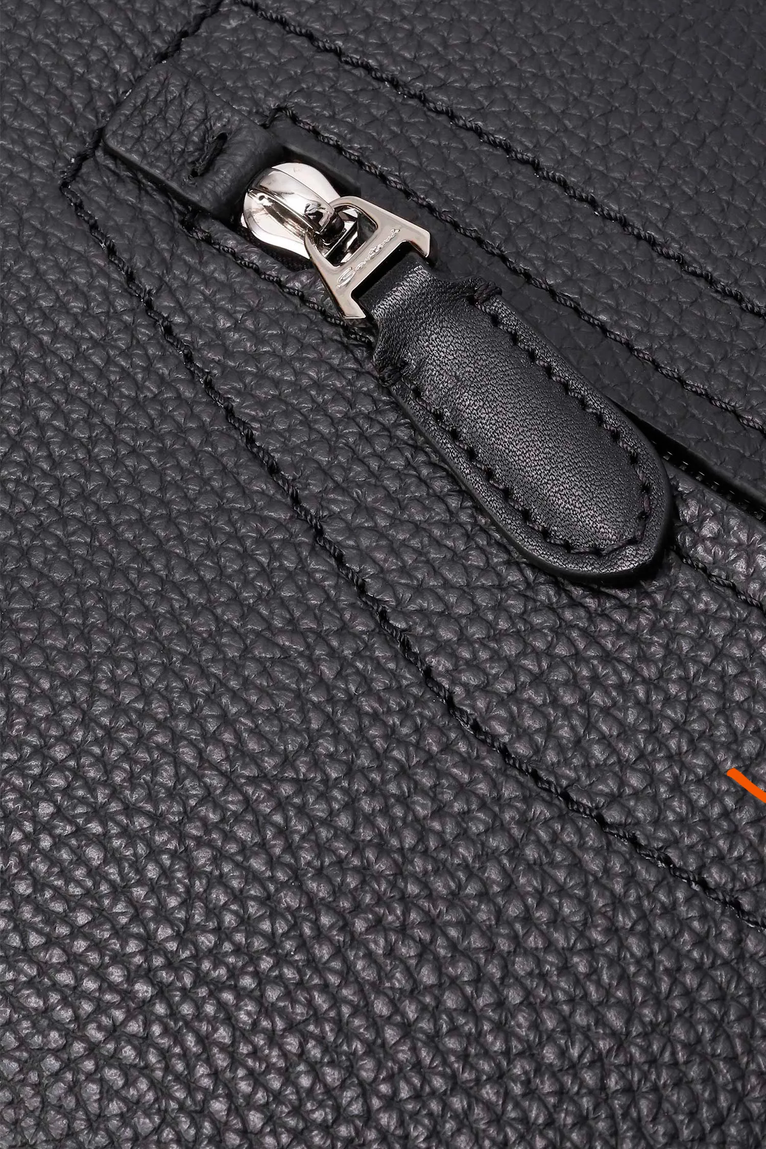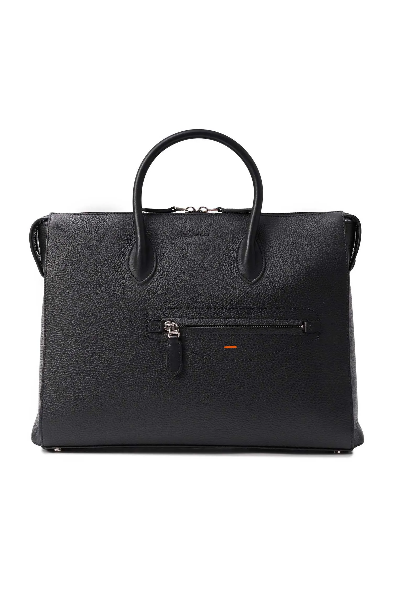 СУМКА-ПОРТФЕЛЬ ЧЁРНАЯ, ЗЕРНИСТАЯ КОЖА, СПЕРЕДИ КАРМАН НА МОЛНИИ, БРЕЛОК ДЛЯ КЛЮЧЕЙ, РУЧКИ, РЕМЕНЬ