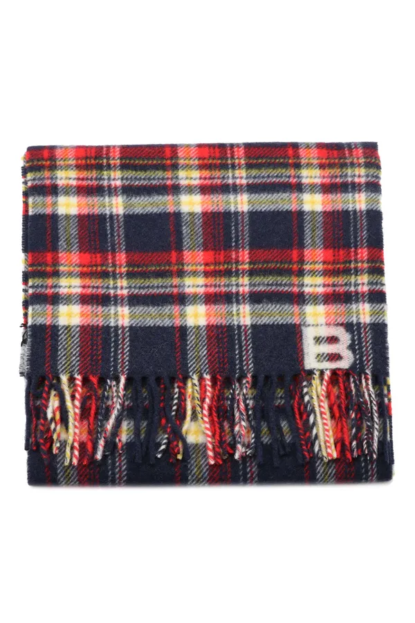 ШАРФ Т/СИНЕ-КРАСНЫЙ ШЕРСТЬ, В КЛЕТКУ, БАХРОМА