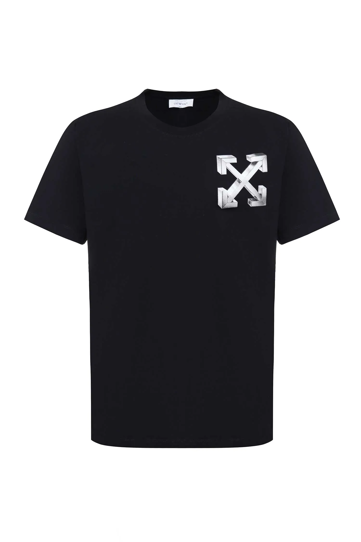 OFF-WHITE ФУТБОЛКА ЧЁРНАЯ, НА ГРУДИ ЛОГО-СТРЕЛКИ, НА СПИНЕ РИС.С ОБЪЁМНЫМИ ЛОГО-БУКВАМИ