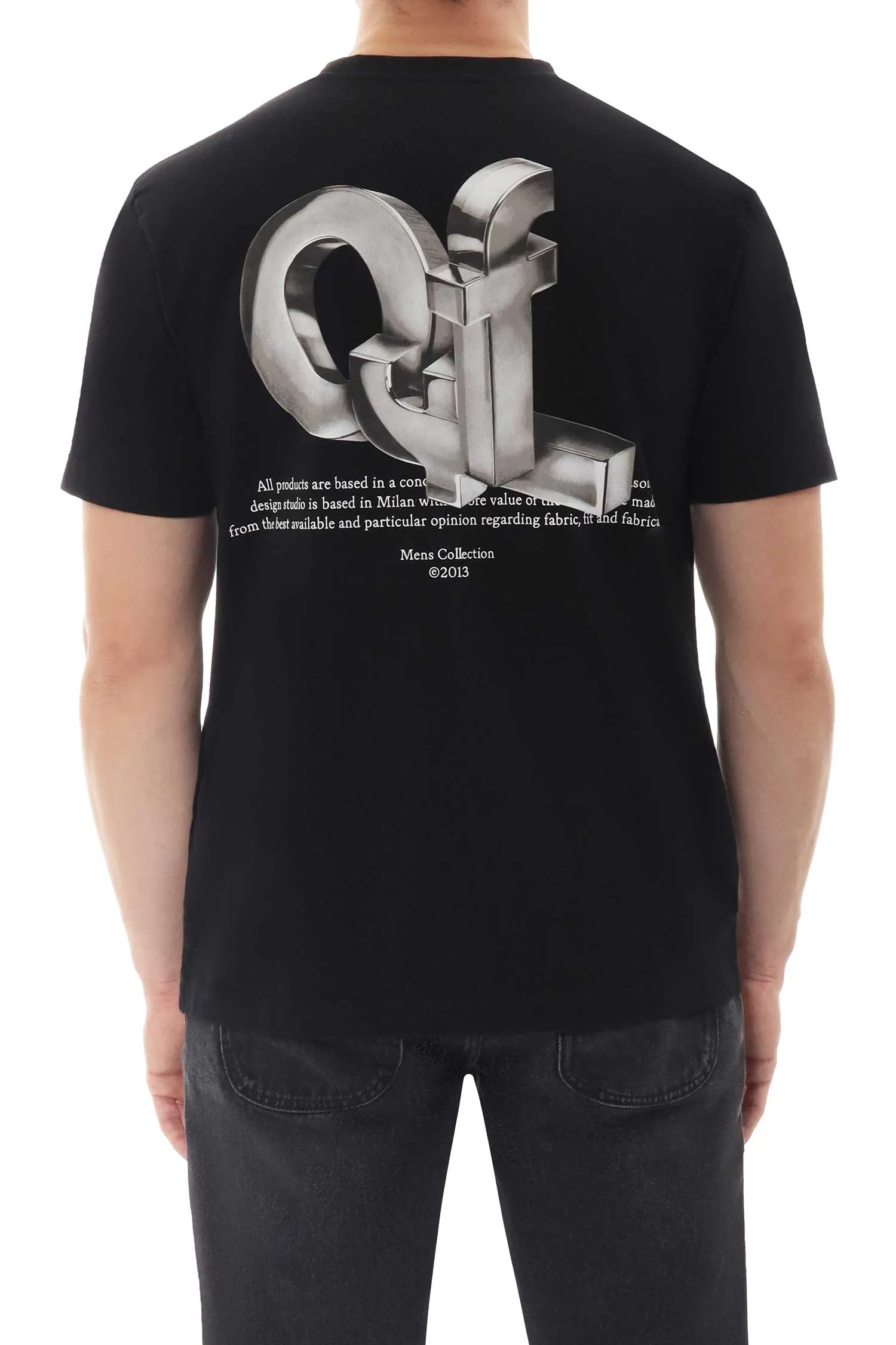ФУТБОЛКА ЧЁРНАЯ, НА ГРУДИ ЛОГО-СТРЕЛКИ, НА СПИНЕ РИС.С ОБЪЁМНЫМИ ЛОГО-БУКВАМИ