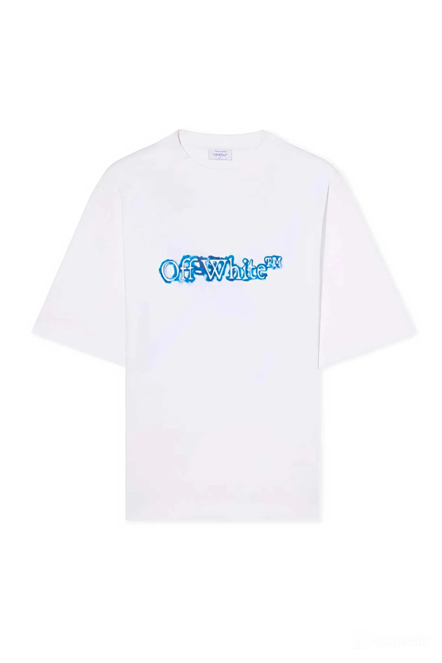 OFF-WHITE ФУТБОЛКА БЕЛАЯ, НА ГРУДИ ЯРКО-СИНЯЯ ЛОГО-НАДПИСЬ, НА СПИНЕ ЛОГО-СТРЕЛКИ