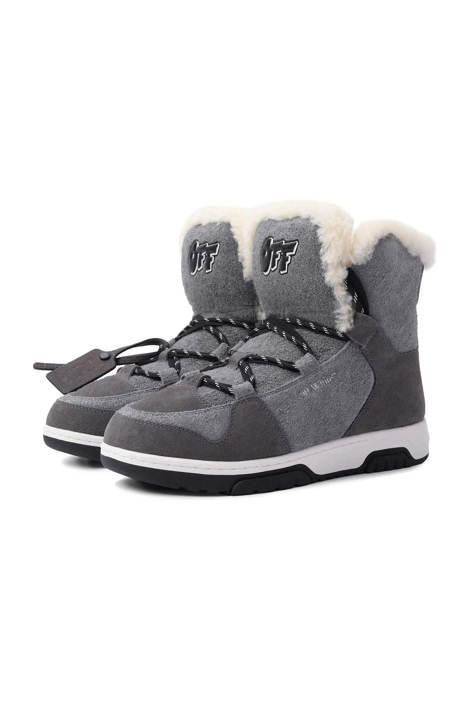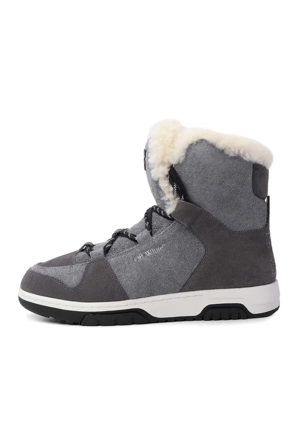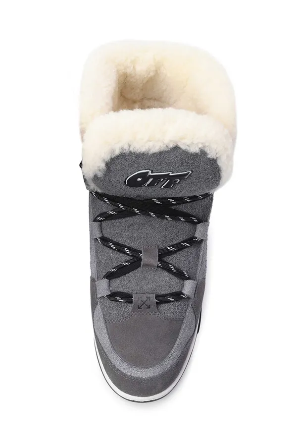 КЕДЫ WINTER BOOT СЕРЫЕ ЗАМША, ВЫСОКИЕ, МОЛОЧНЫЙ МЕХ, НА ЯЗЫЧКЕ ЛОГО, ДВОЙНЫЕ ШНУРКИ, Т/СЕРЫЙ БРЕЛОК, К=3,5