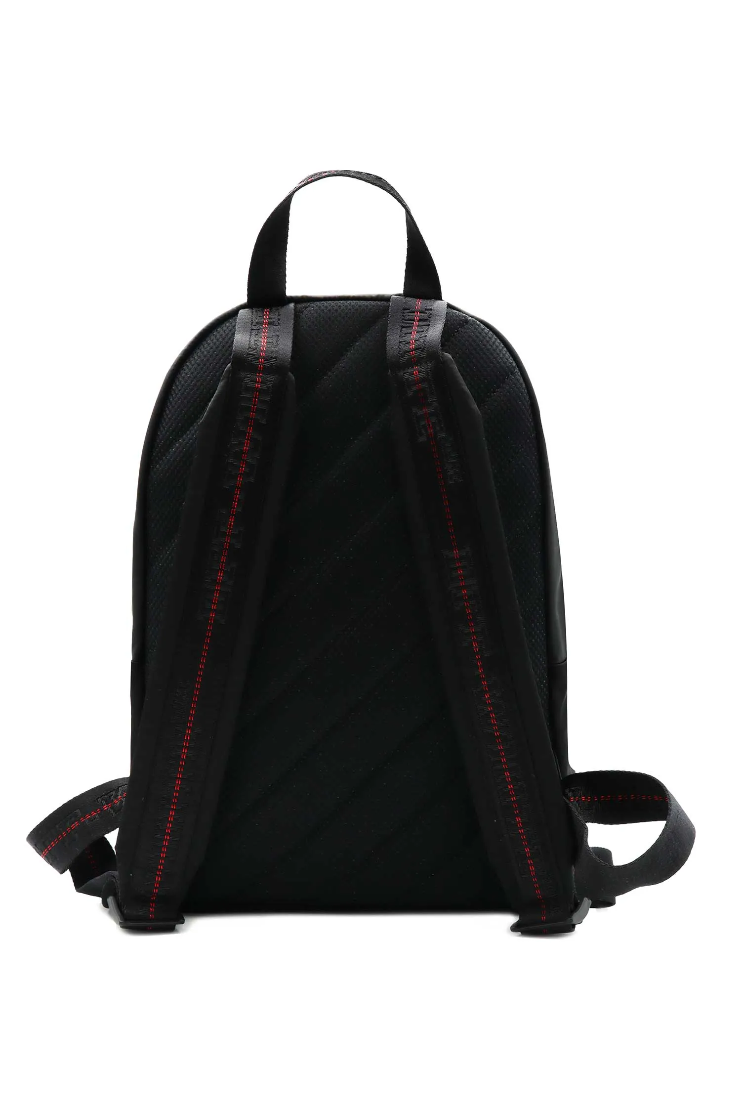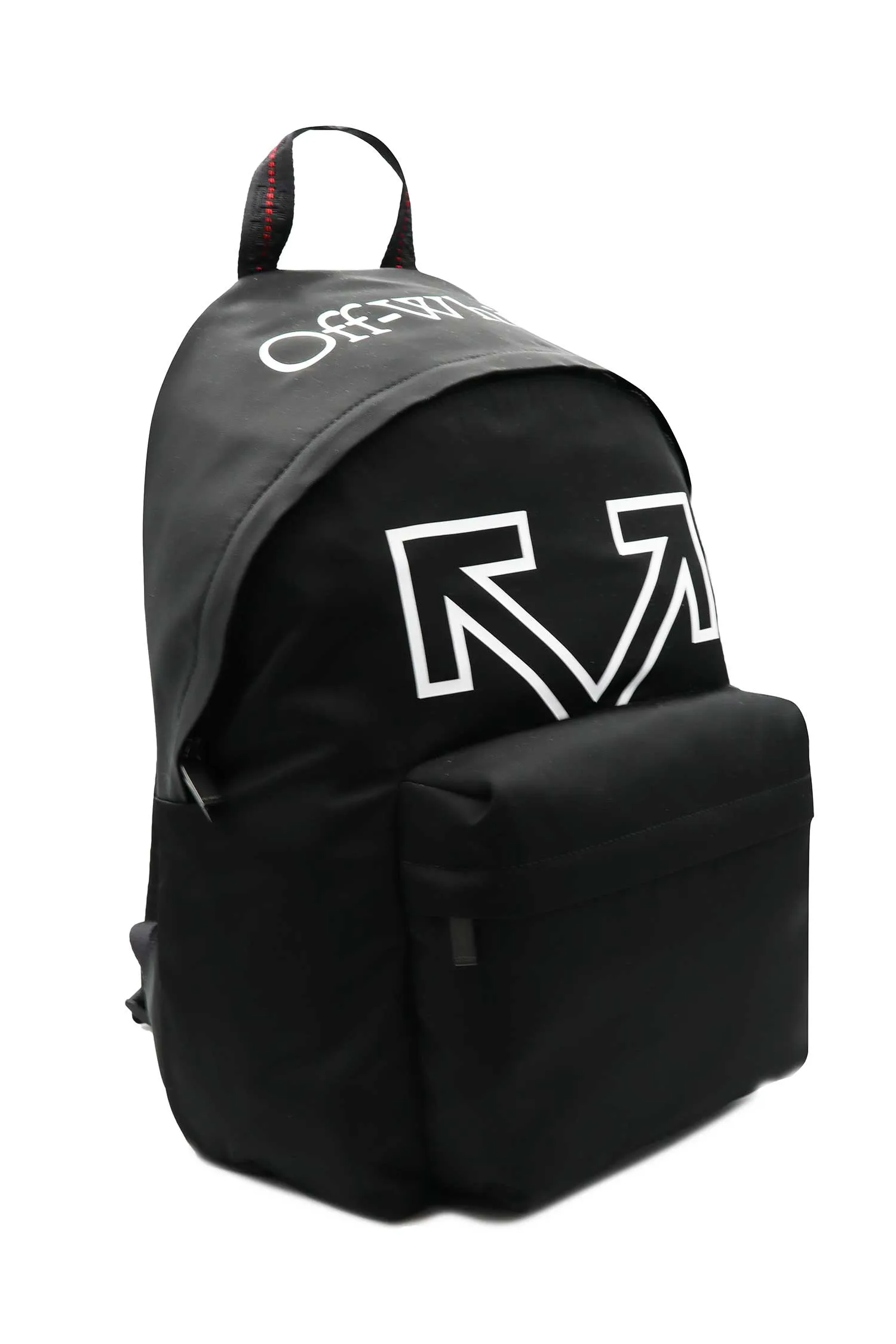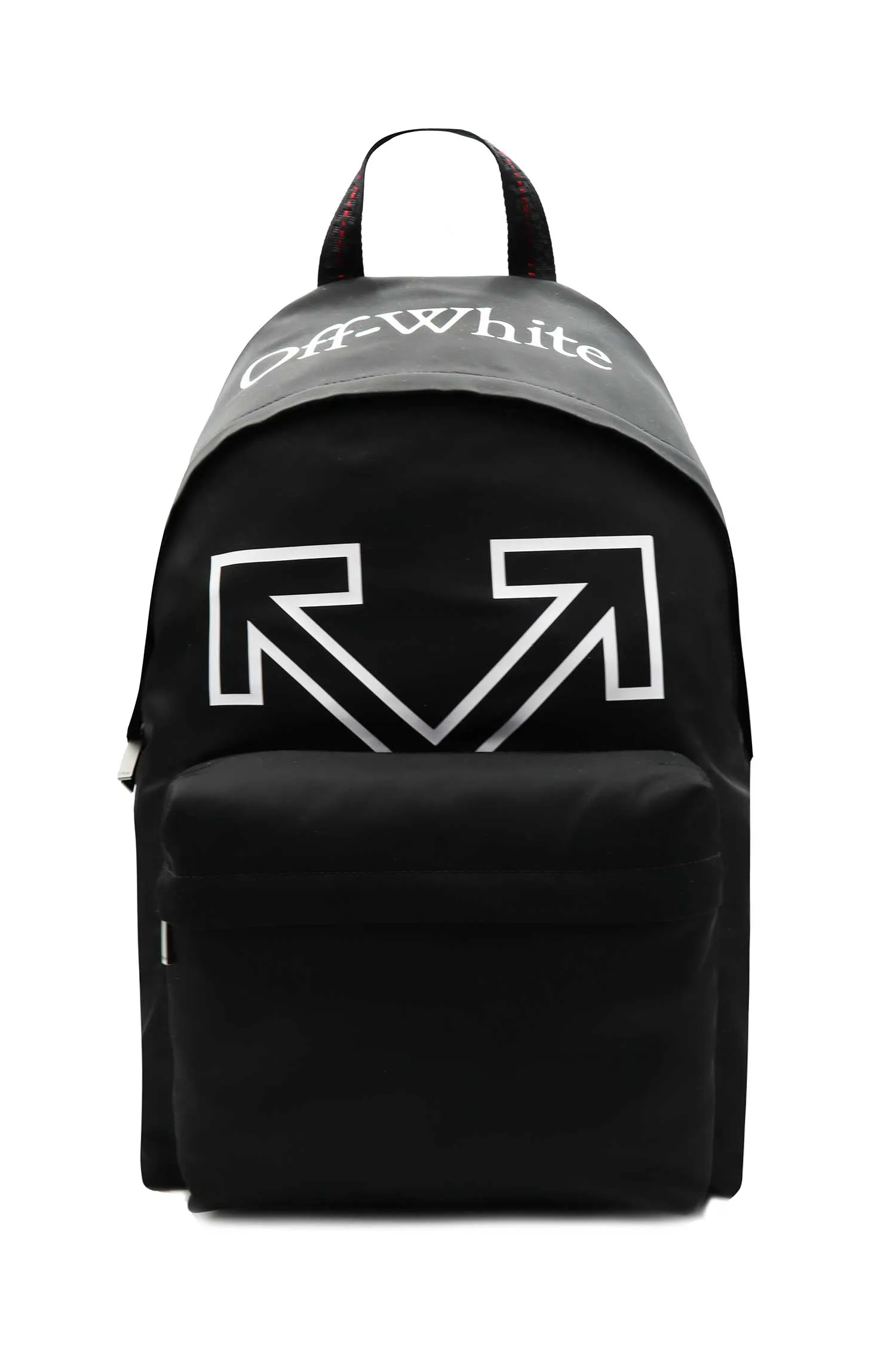 РЮКЗАК ЧЁРНЫЙ НЕЙЛОН, СПЕРЕДИ НАКЛАДНОЙ КАРМАН НА МОЛНИИ, БЕЛЫЕ ЛОГО-СТРЕЛКИ И ЛОГО-НАДПИСЬ, РУЧКА