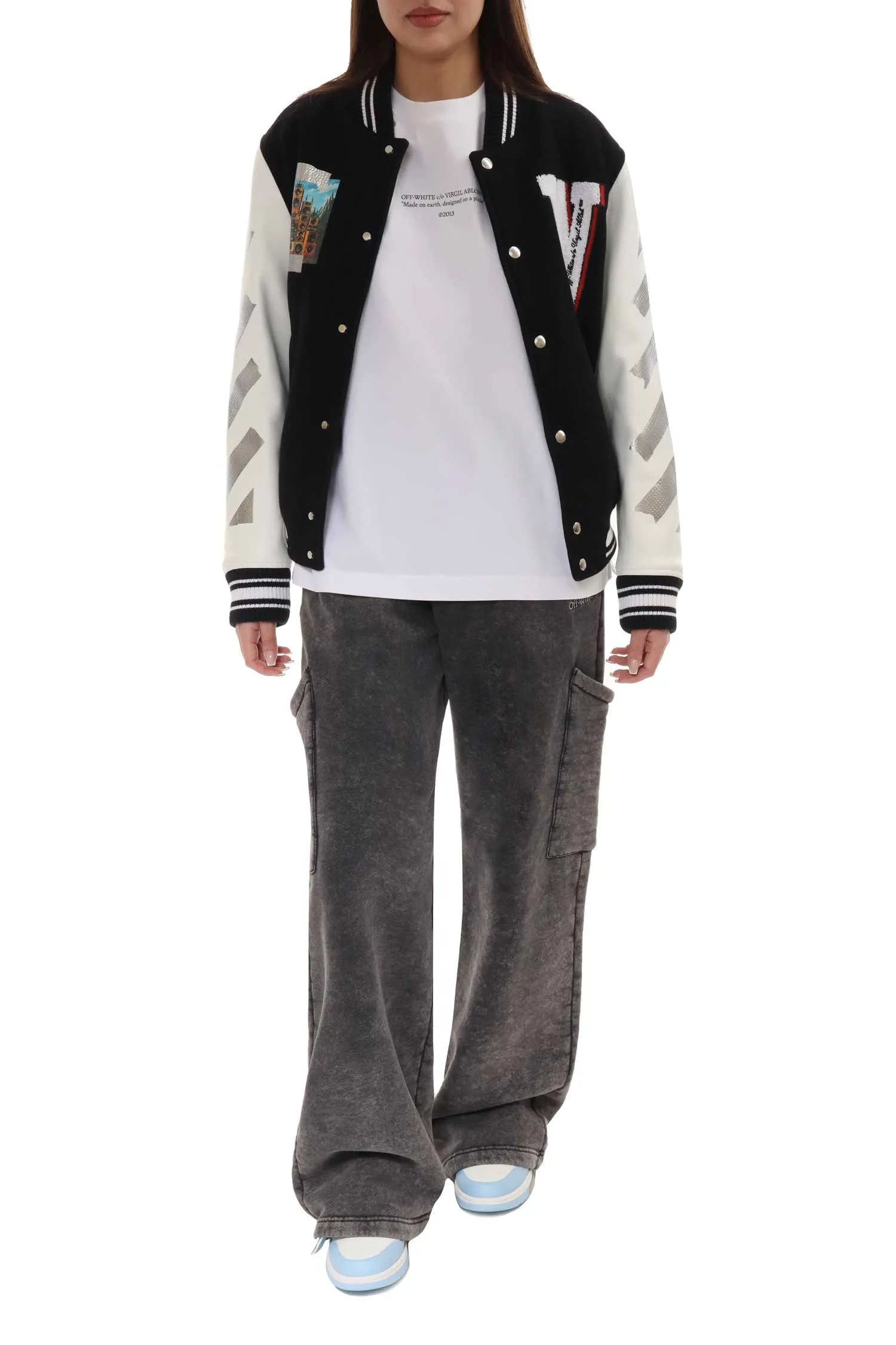 Бомбер в стиле varsity сочетает уличную эстетику и премиальные материалы, формируя выразительный современный силуэт. Модель выполнена из плотного смесового полотна на основе шерсти с кожаными вставками, что придаёт изделию структуру и визуальную глубину. Трикотажные элементы обеспечивают комфортную посадку, а подкладка усиливает ощущение уюта. Акцентная отделка и фирменные детали подчёркивают характер модели и её коллекционную ценность.
