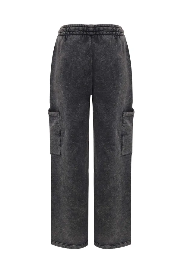 ШТАНЫ Т/СЕРЫЕ НА КУЛИСКЕ, ВЫВАРЕННЫЕ, СВОБОДНЫЕ, СБОКУ НАКЛАДНЫЕ КАРМАНЫ