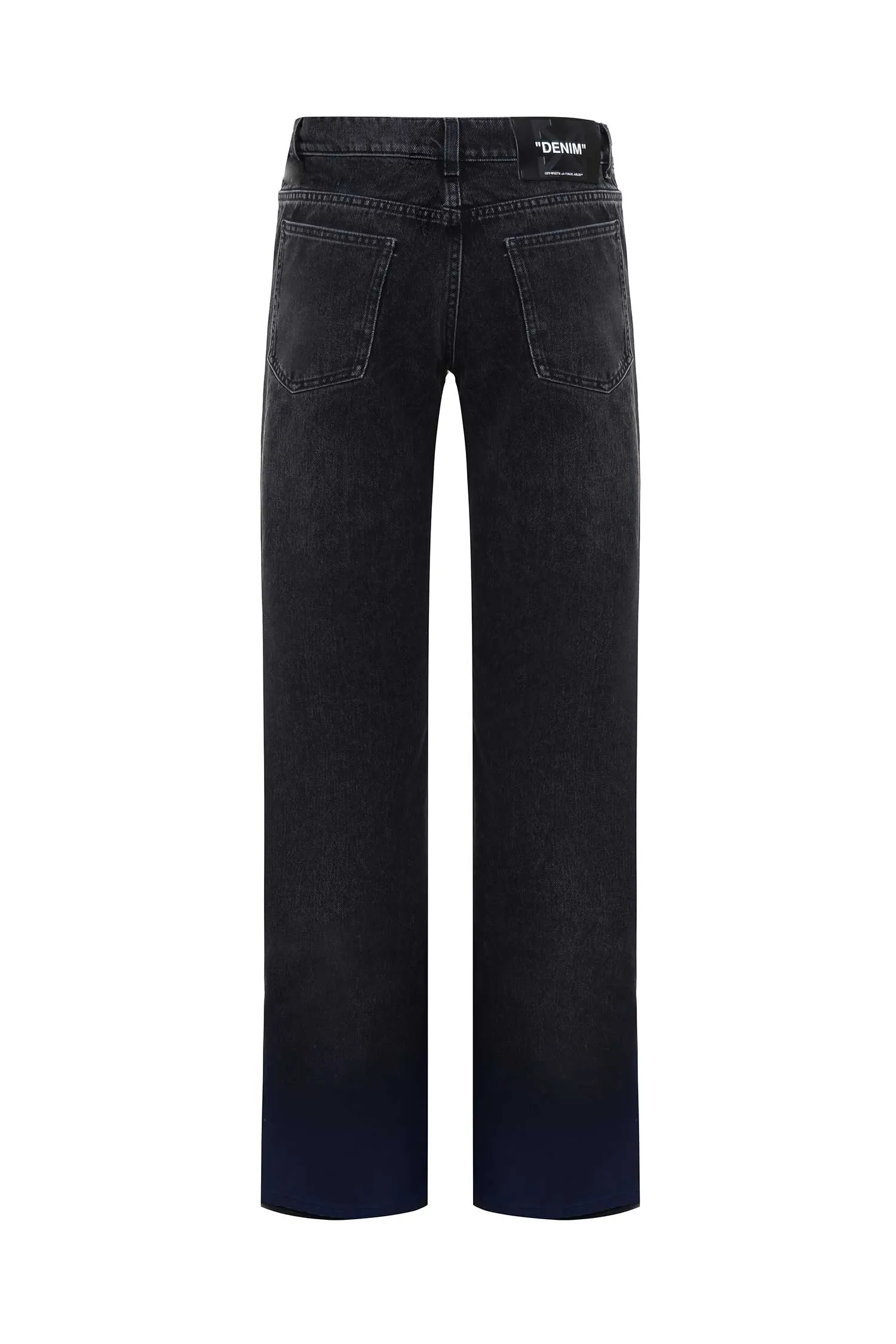 ДЖИНСЫ ЧЁРНО-СИНИЕ ДЕГРАДЕ, ПРЯМЫЕ, СБОКУ НАШИВКА-ЛОГО, Ш=23,5