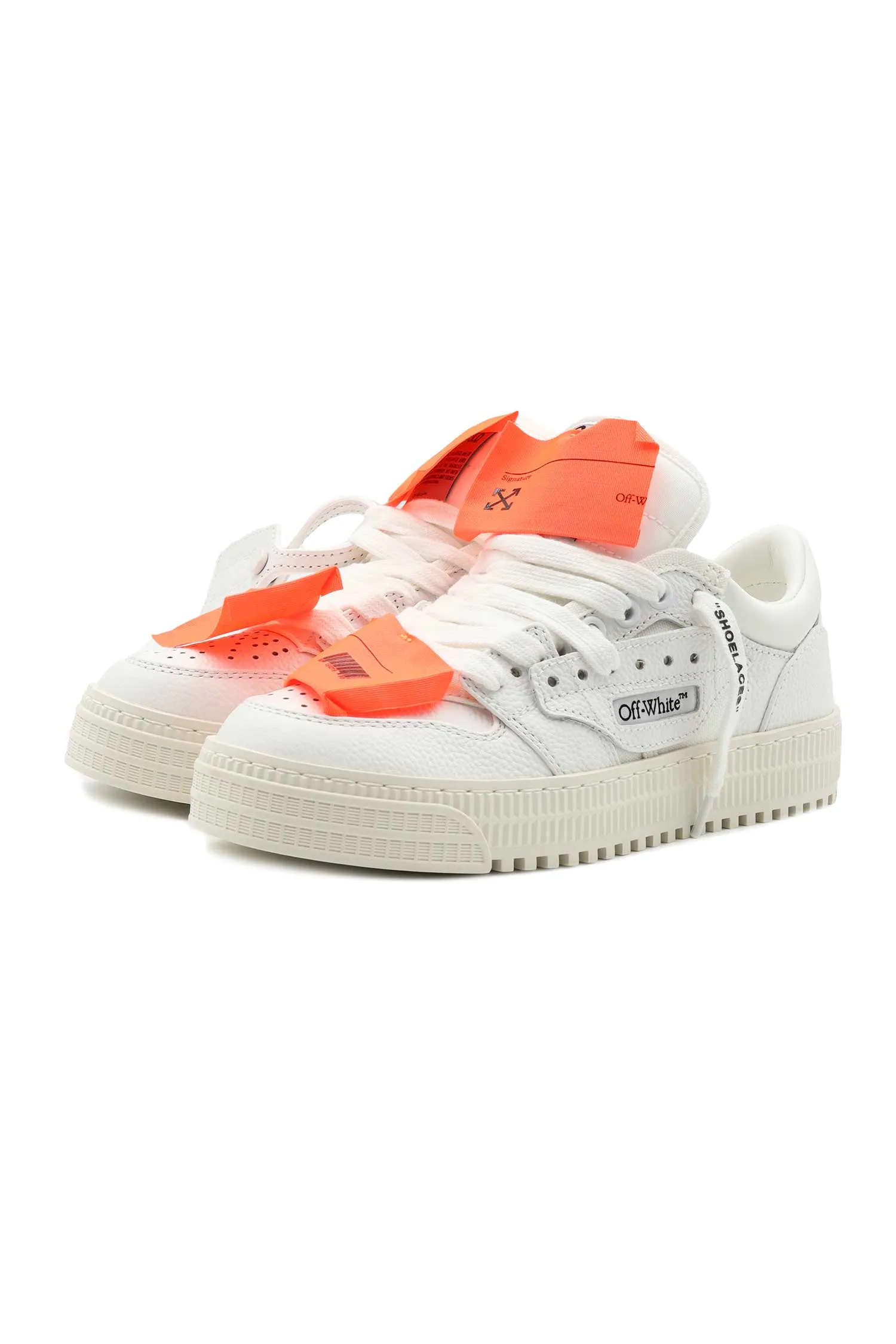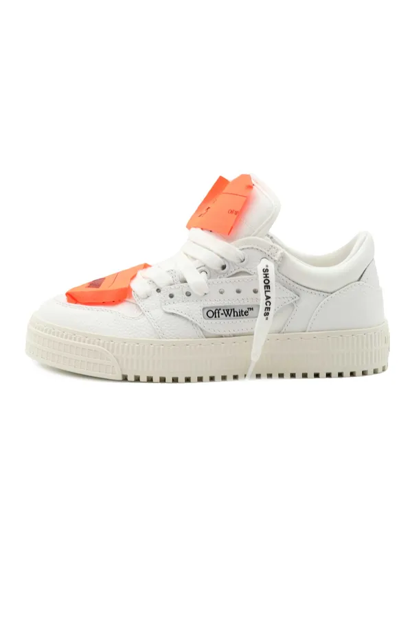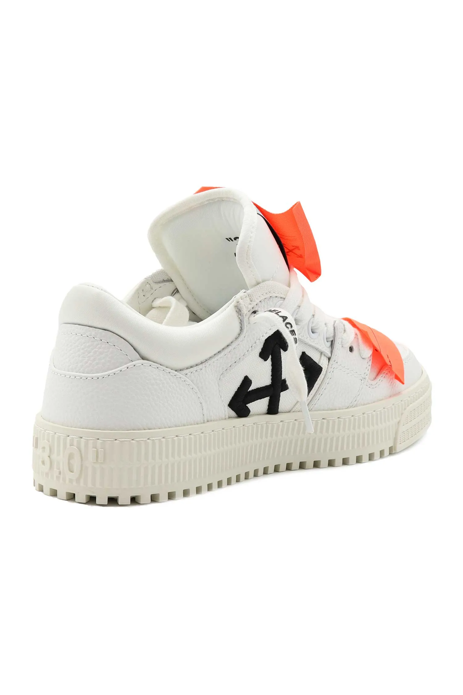 КЕДЫ LOW TOP 3.0 OFF COURT БЕЛЫЕ, КОМБИНИР., ЗЕРНИСТАЯ КОЖА+ТЕКСТИЛЬ, СБОКУ ЧЁРНЫЕ ЛОГО-СТРЕЛКИ, ОРАНЖЕВЫЕ ПАТЧИ, БРЕЛОК В ТОН, К=3,5