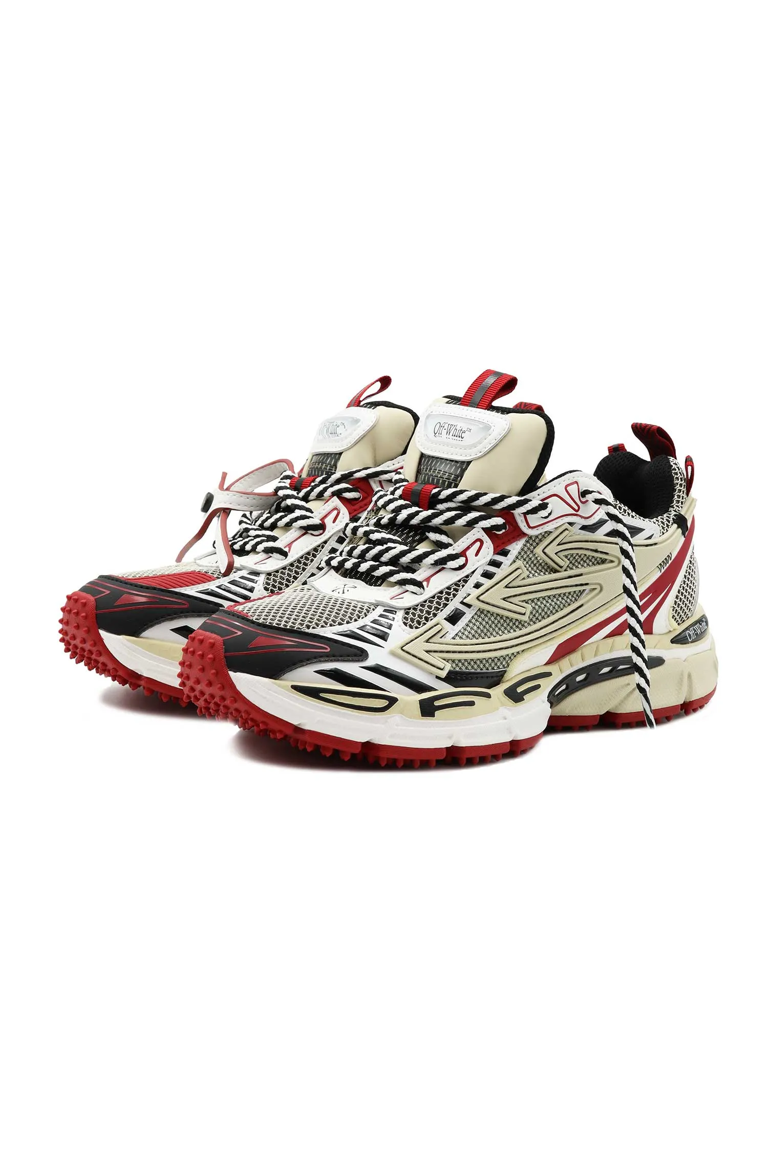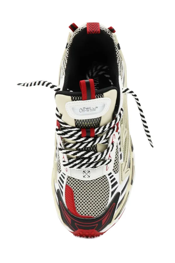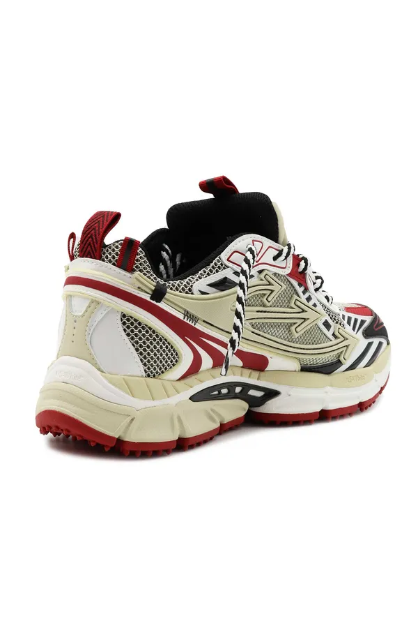 OFF-WHITE КРОССОВКИ OW BE RIGHT BACK БЕЖЕВО-ЧЁРНО-КРАСНЫЕ, КОМБИНИР., СЕТКА+ЭКОКОЖА, БЕЛЫЙ БРЕЛОК, К=5