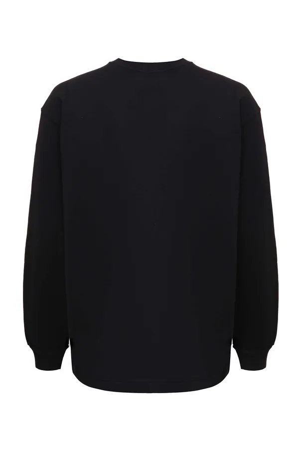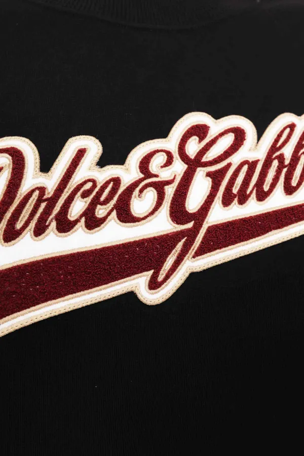 DOLCE&GABBANA СВИТШОТ ЧЁРНЫЙ, НА ГРУДИ БЕЛО-КОРИЧНЕВАЯ НАШИВКА-ЛОГО