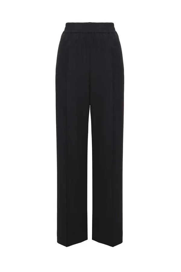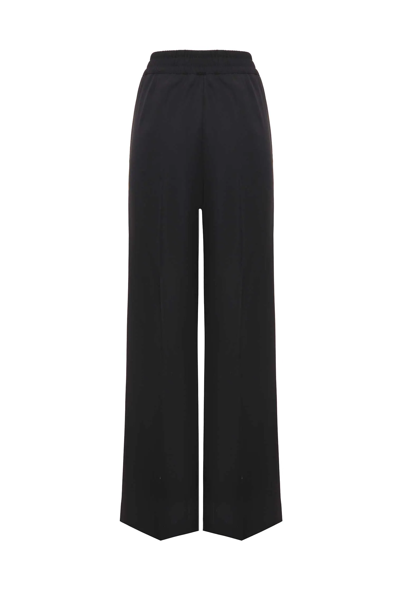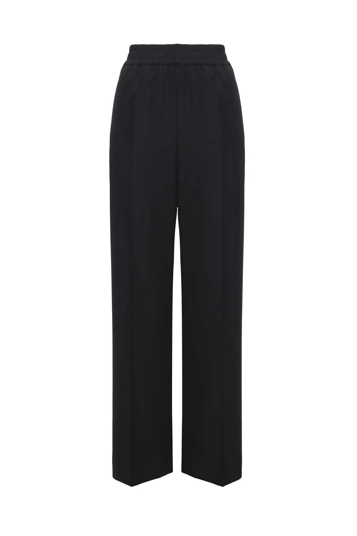 БРЮКИ ЧЁРНЫЕ ШЕРСТЬ, СВОБОДНЫЕ, ПОЯС НА РЕЗИНКЕ, ОТСТРОЧЕННЫЕ СТРЕЛКИ, КАРМАНЫ
