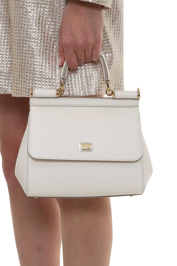DOLCE&GABBANA СУМКА SICILY MEDIUM БЕЛАЯ, ТИСНЁНАЯ КОЖА, ФОРМА САКВОЯЖА, С КЛАПАНОМ, ЗАСТЁЖКА-ФАСТЕКС, РУЧКА, РЕМЕШОК