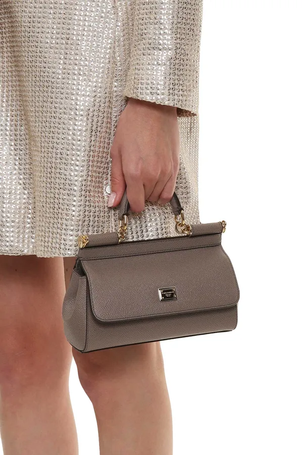 СУМКА SICILY SMALL БЕЖЕВО-КОРИЧНЕВАЯ, ТИСНЁНАЯ КОЖА, ФОРМА САКВОЯЖА, С КЛАПАНОМ, ЗАСТЁЖКА-ФАСТЕКС, РУЧКА, РЕМЕШОК